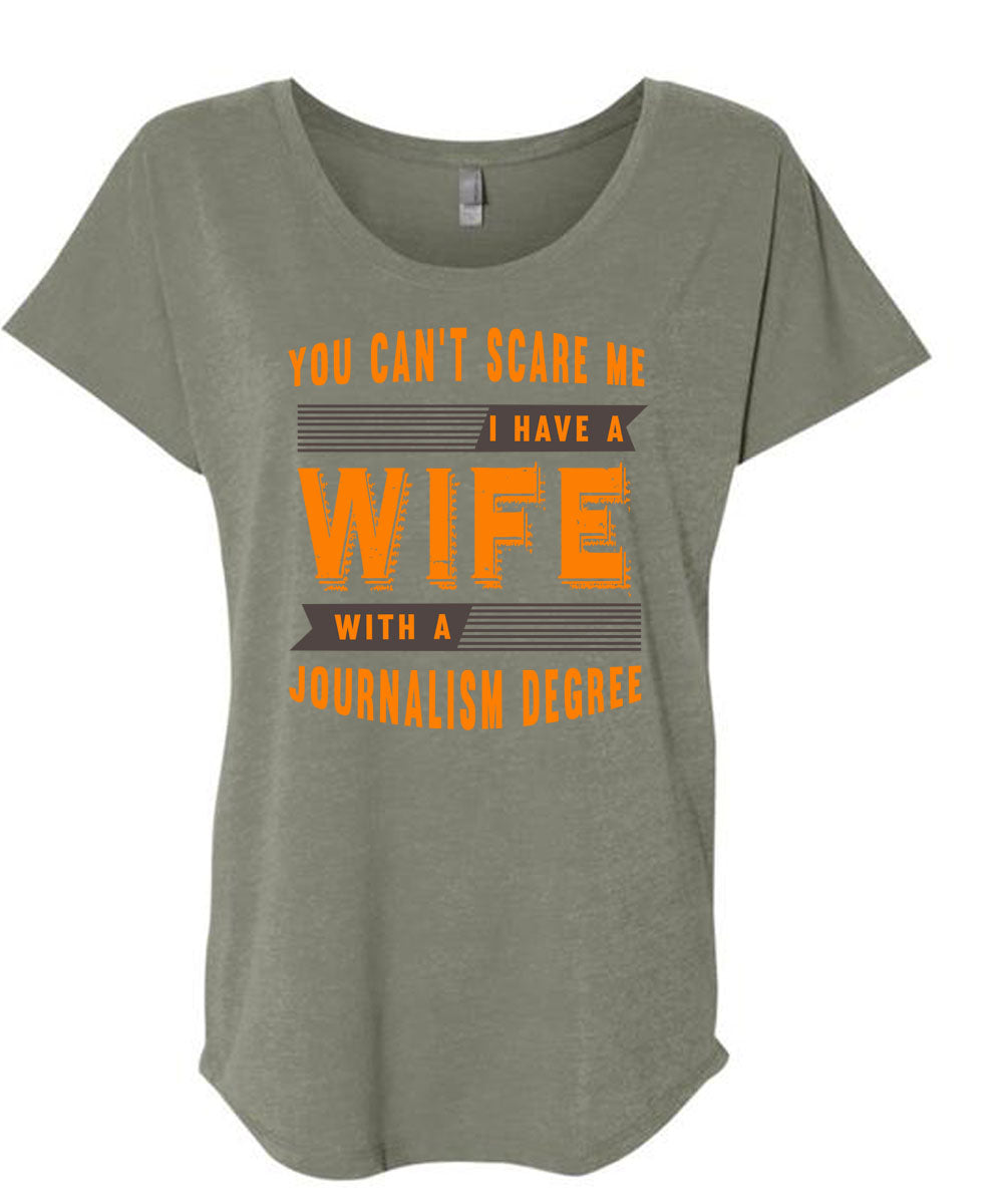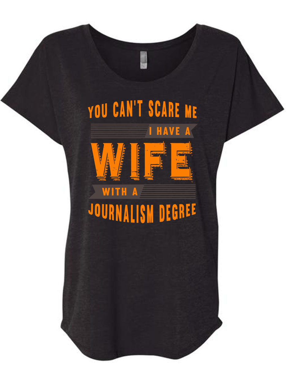 I Have A Wife With A Journalism Degree T Shirt, You Can't Scare Me T Shirt, Cool Shirt (Ladies' Triblend Dolman Sleeve)