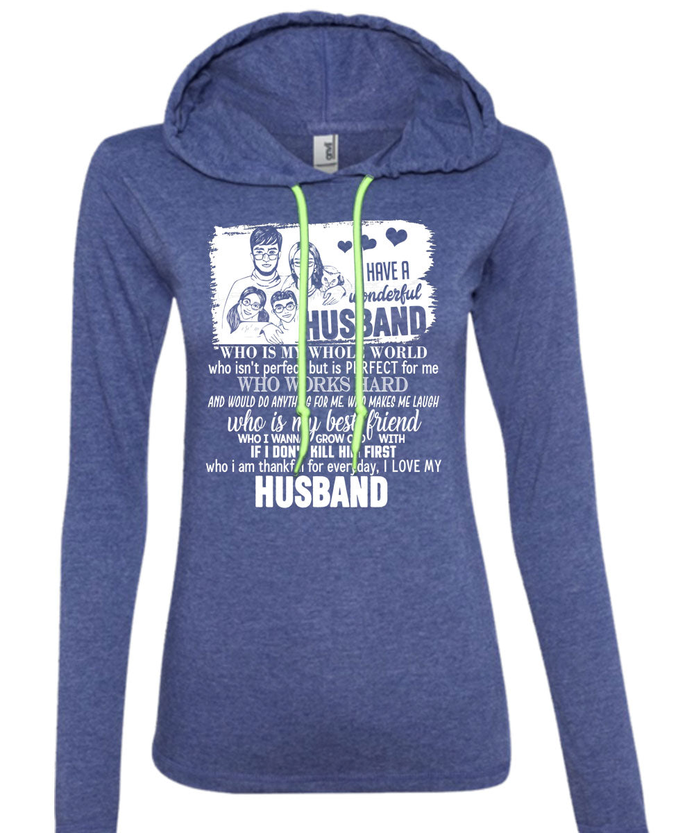 I Have A Wonderful Husband T Shirt, I Love My Husband T Shirt (Anvil Ladies Ringspun Hooded)