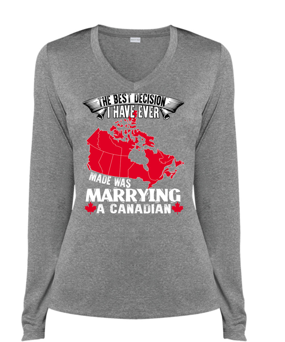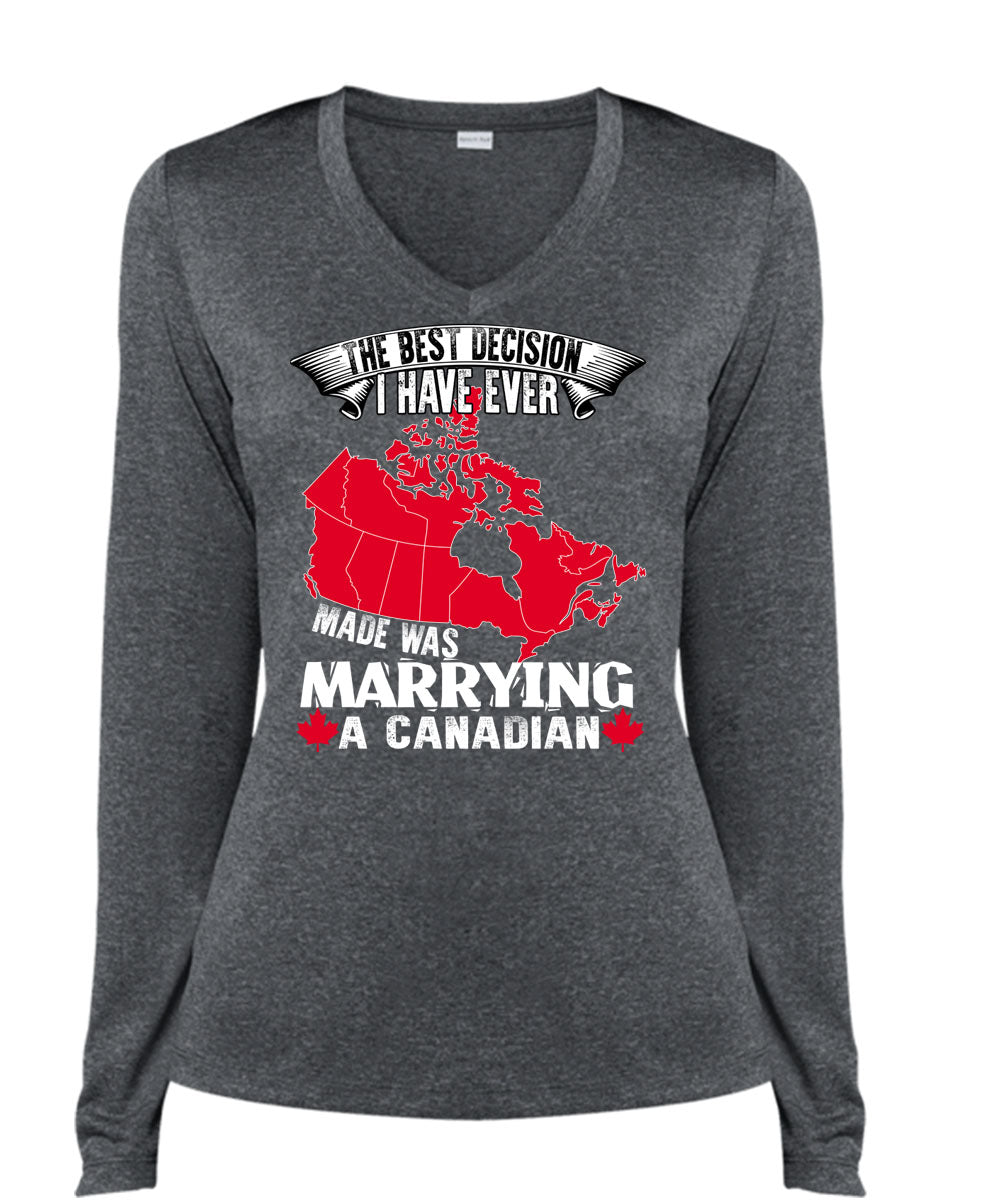 I Have Ever Made Was Marrying A Canadian T Shirt, I Love Husband T Shirt, Cool Shirt (Ladies LS Heather V-Neck)