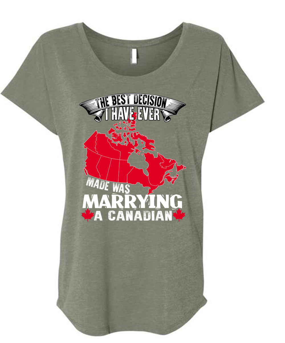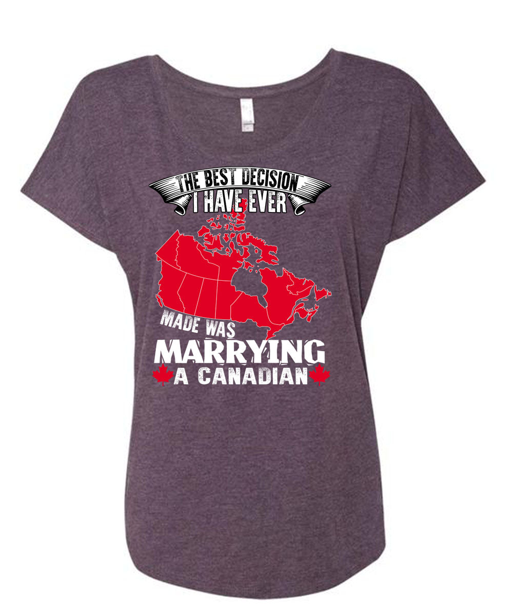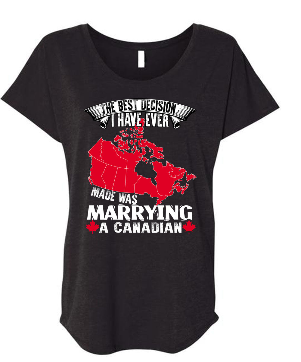 I Have Ever Made Was Marrying A Canadian T Shirt, I Love Husband T Shirt, Cool Shirt (Ladies' Triblend Dolman Sleeve)