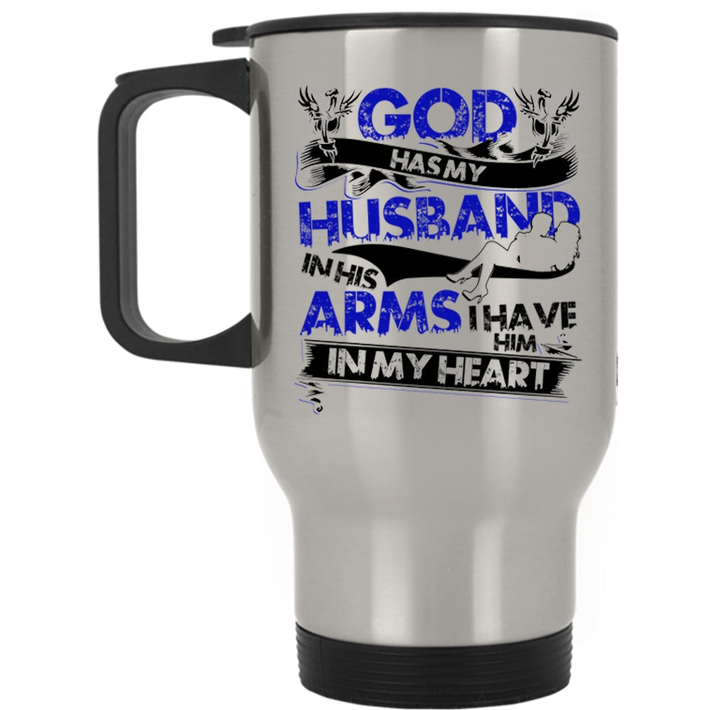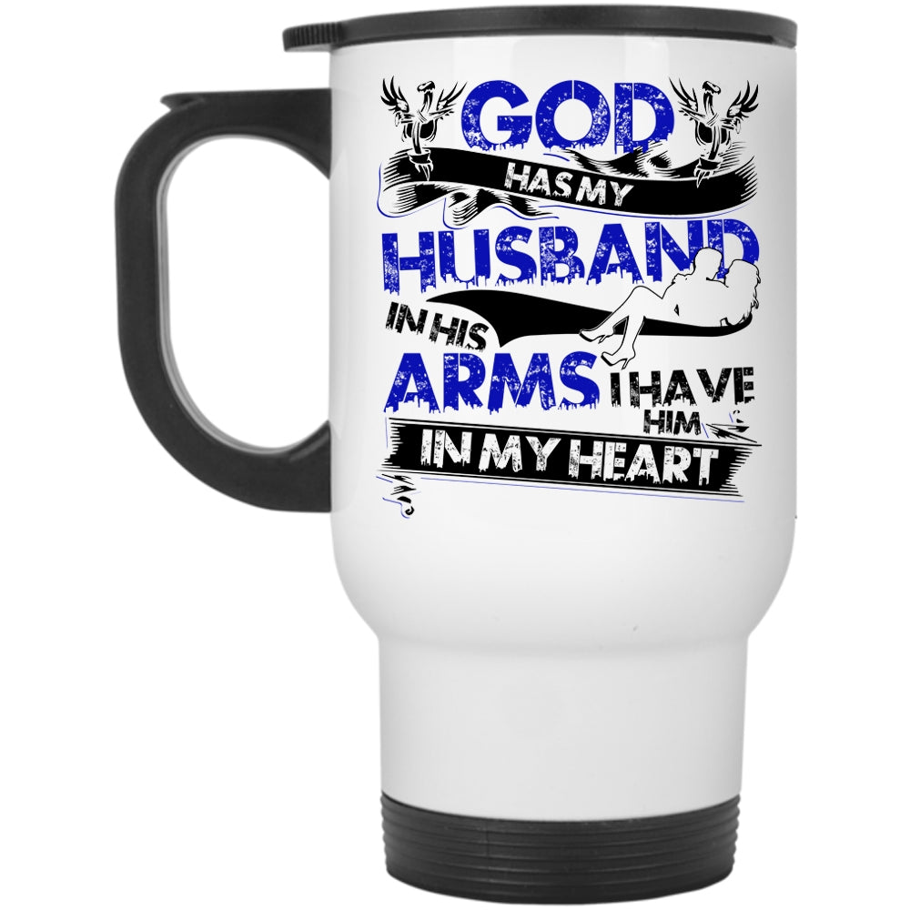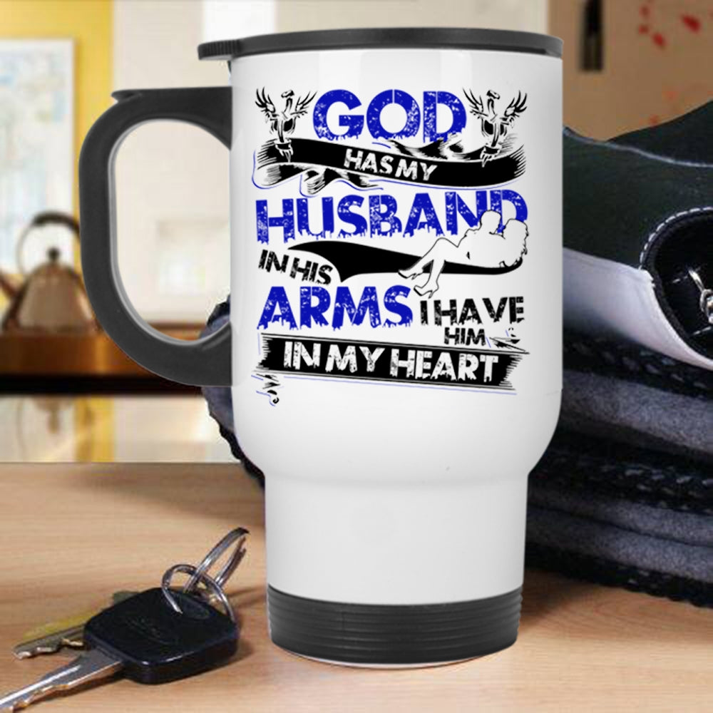 I Have Him In My Heart Travel Mug, God Has My Husband In His Arms Mug