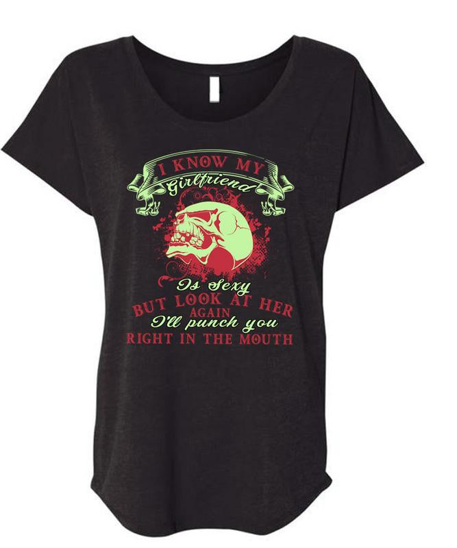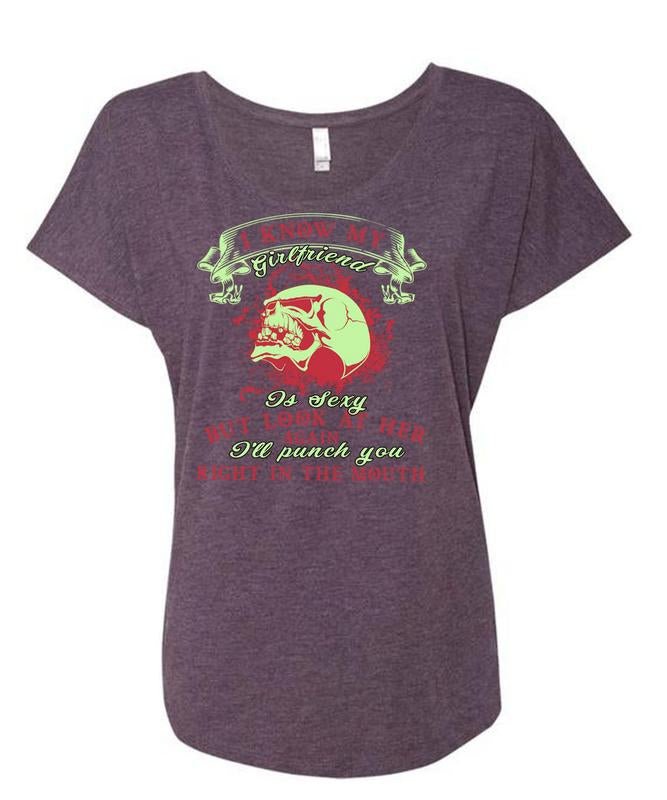 I Know My Girlfriend T Shirt, Being A Wife T Shirt, Cool Shirt (Ladies' Triblend Dolman Sleeve)