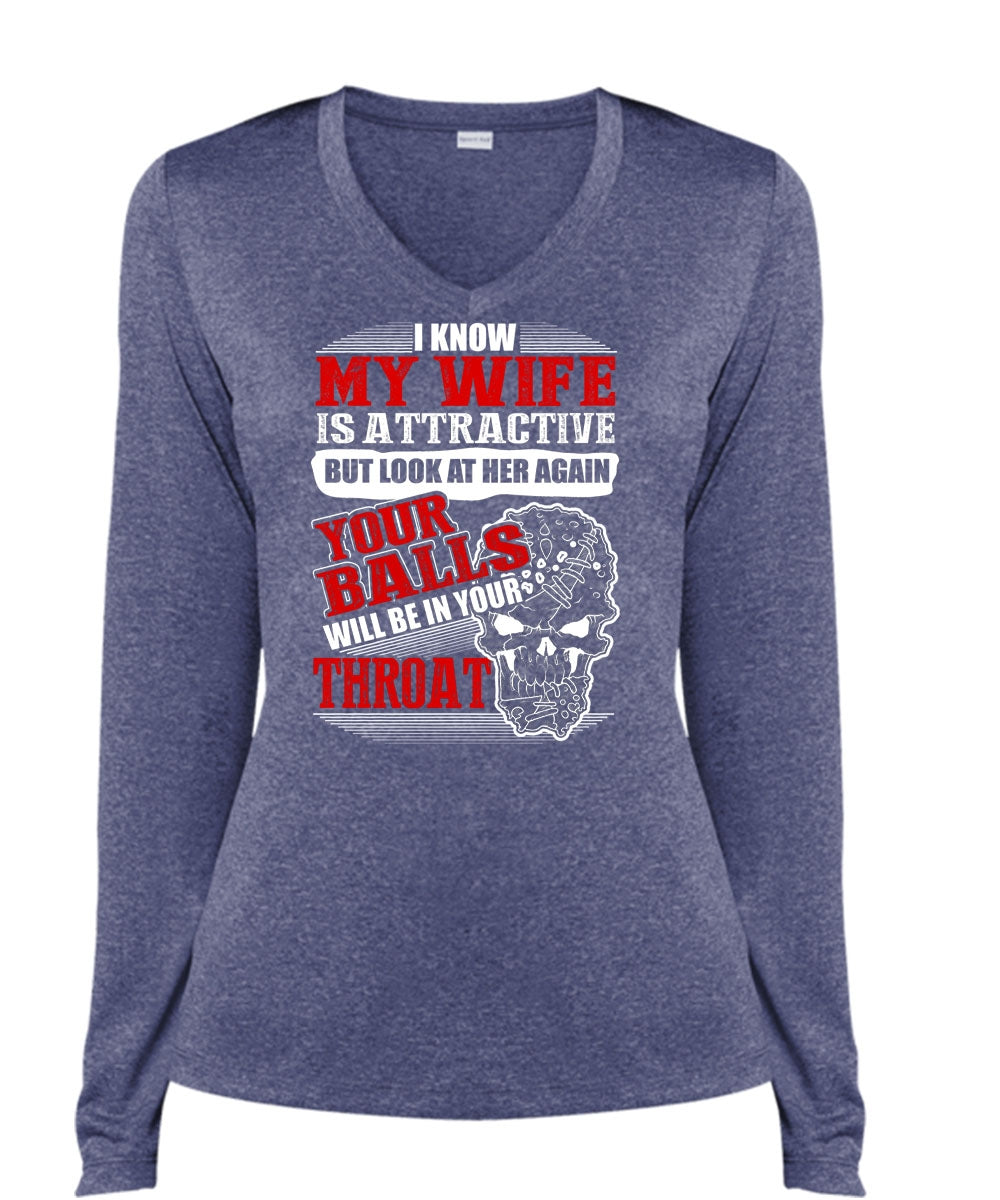 I Know My Wife Is Attractive T Shirt, I Love Wife T Shirt, Cool Shirt (Ladies LS Heather V-Neck)