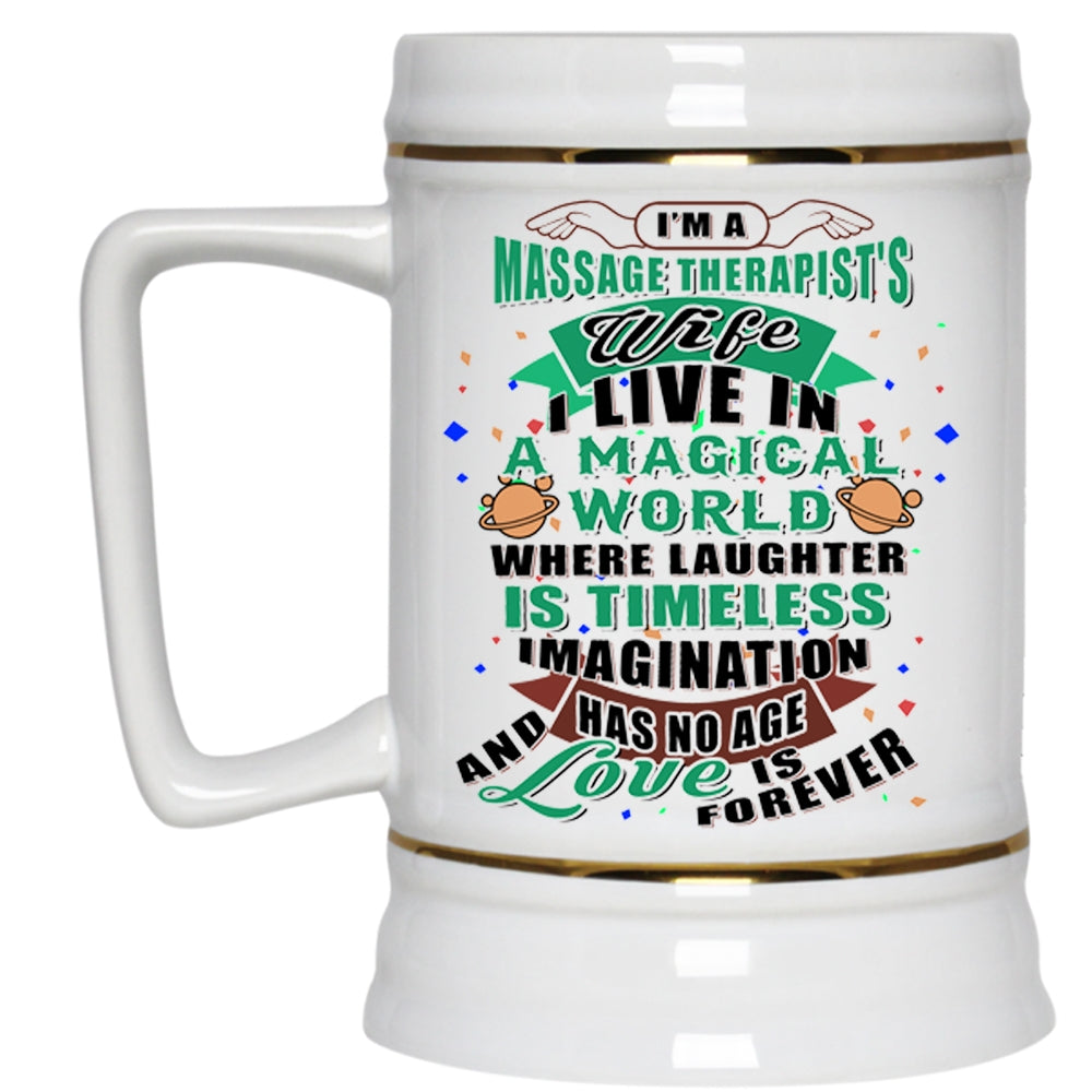 I Live In A Magical World Beer Stein 22oz, I'm A Massage Therapist's Wife Beer Mug