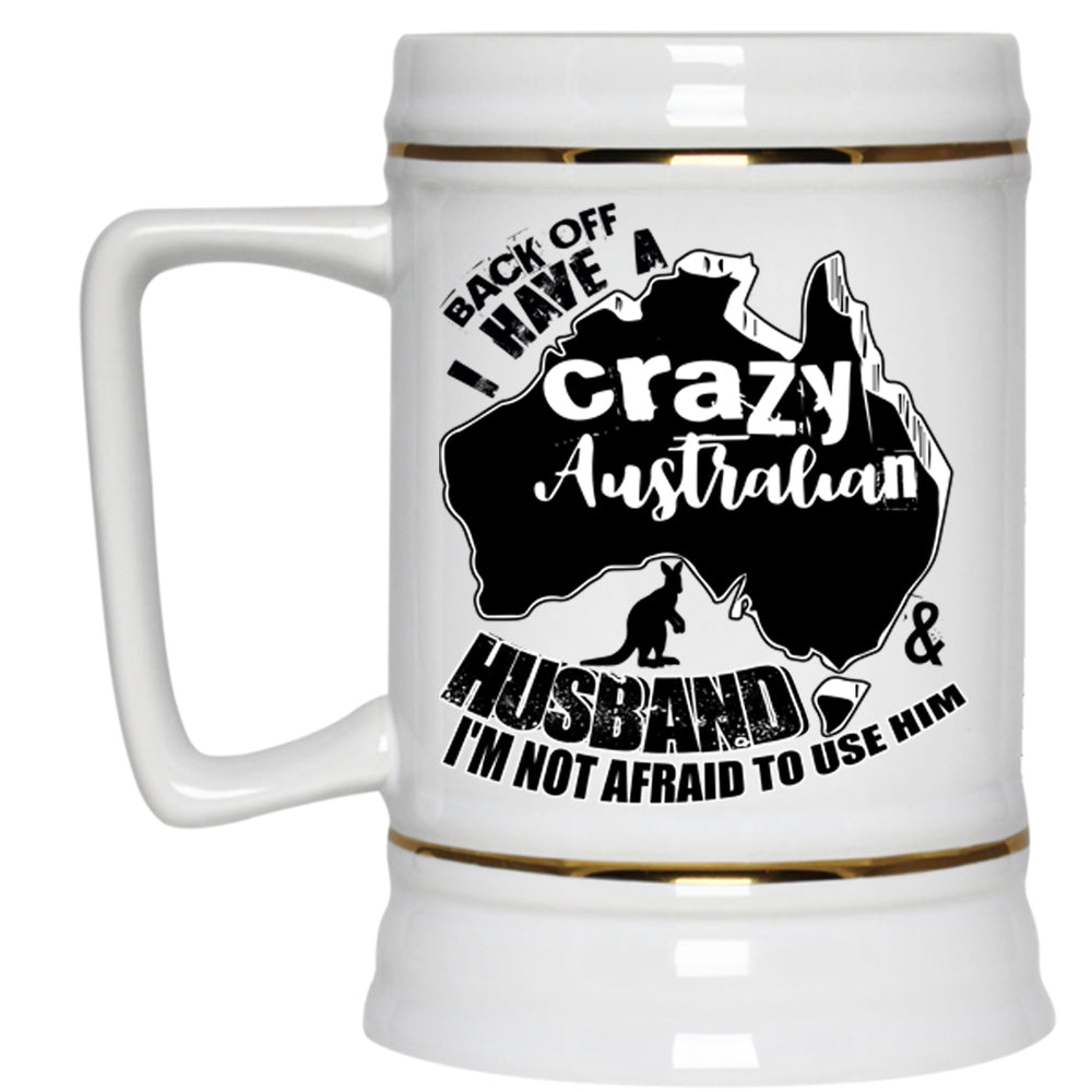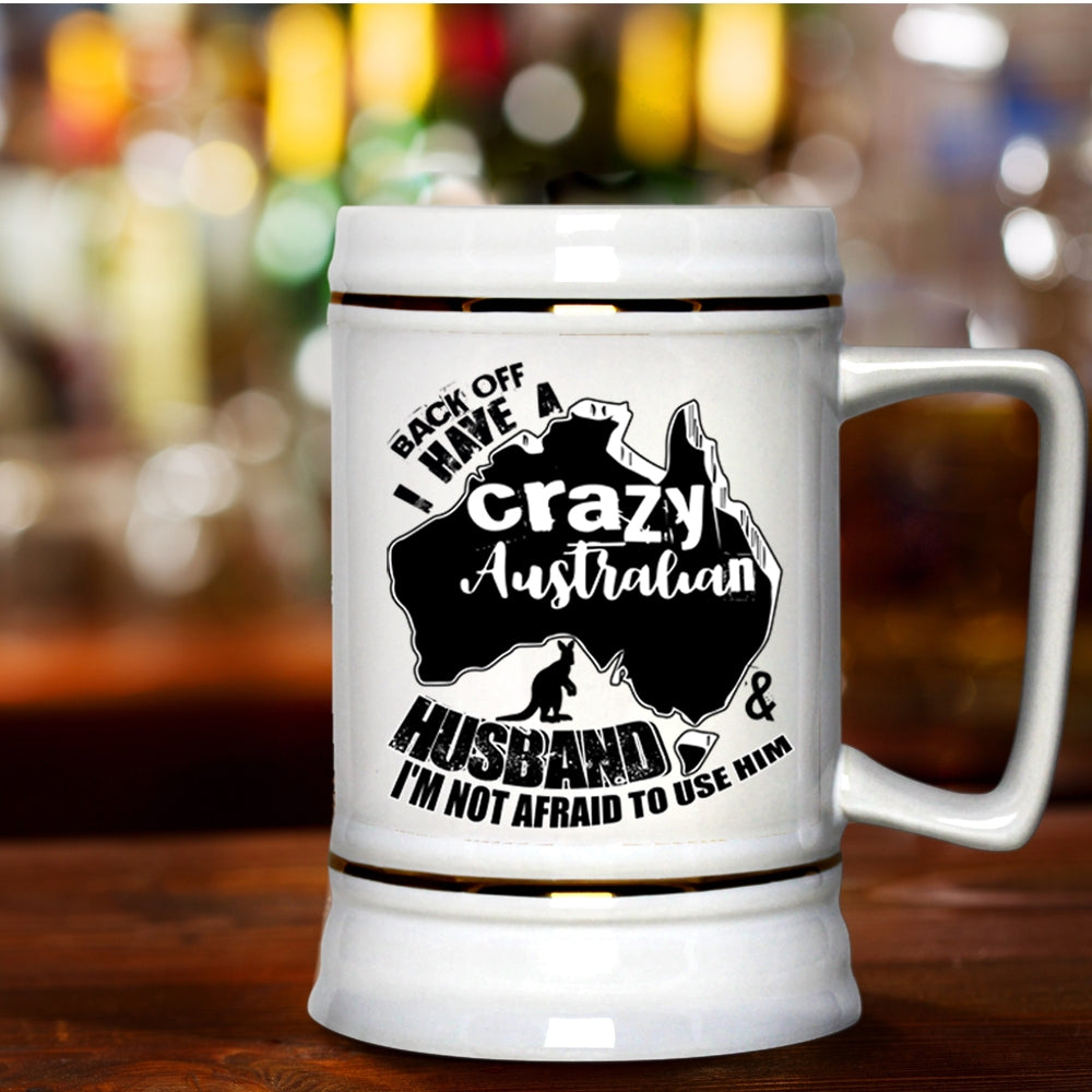 I Love Australian Husband Beer Stein 22oz, I Have A Crazy Australian Husband Beer Mug