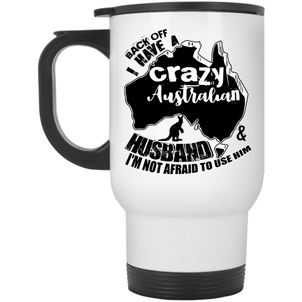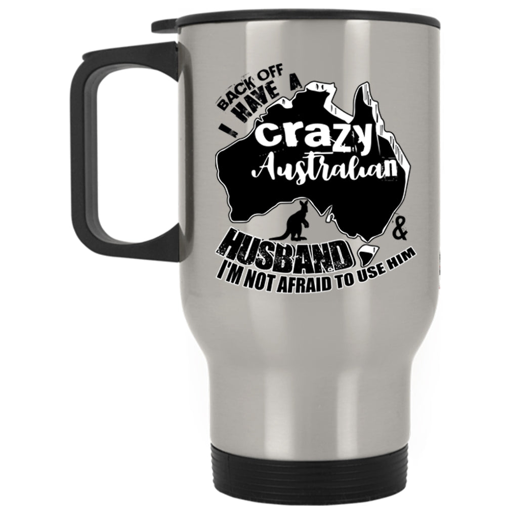 I Love Australian Husband Travel Mug, I Have A Crazy Australian Husband Mug