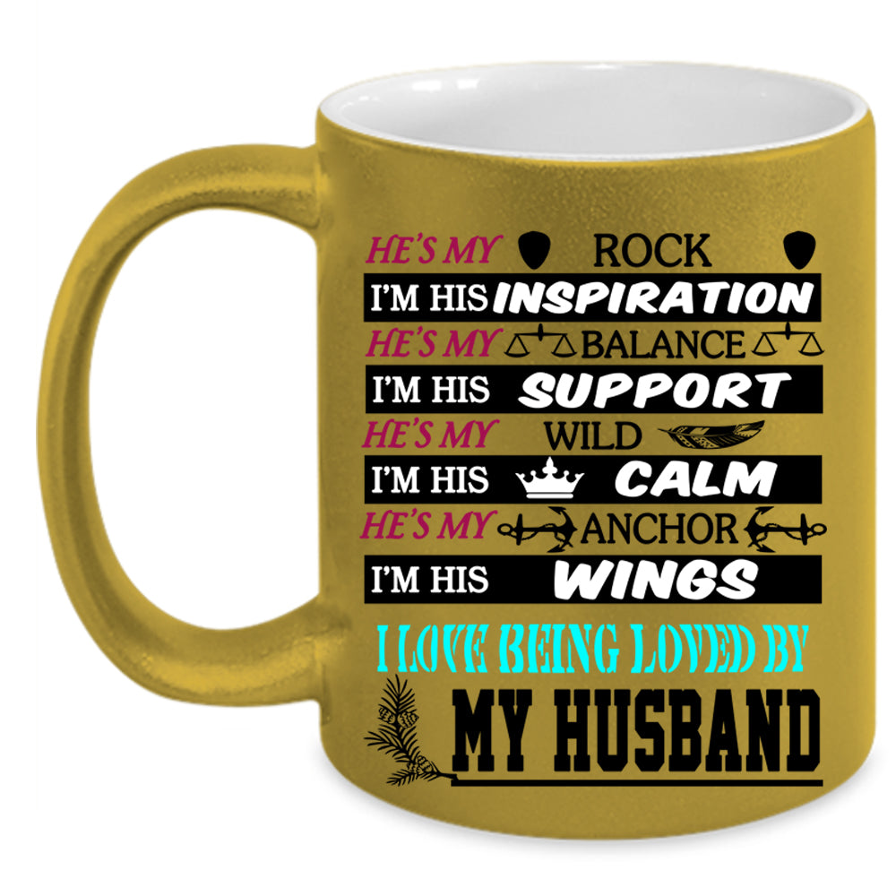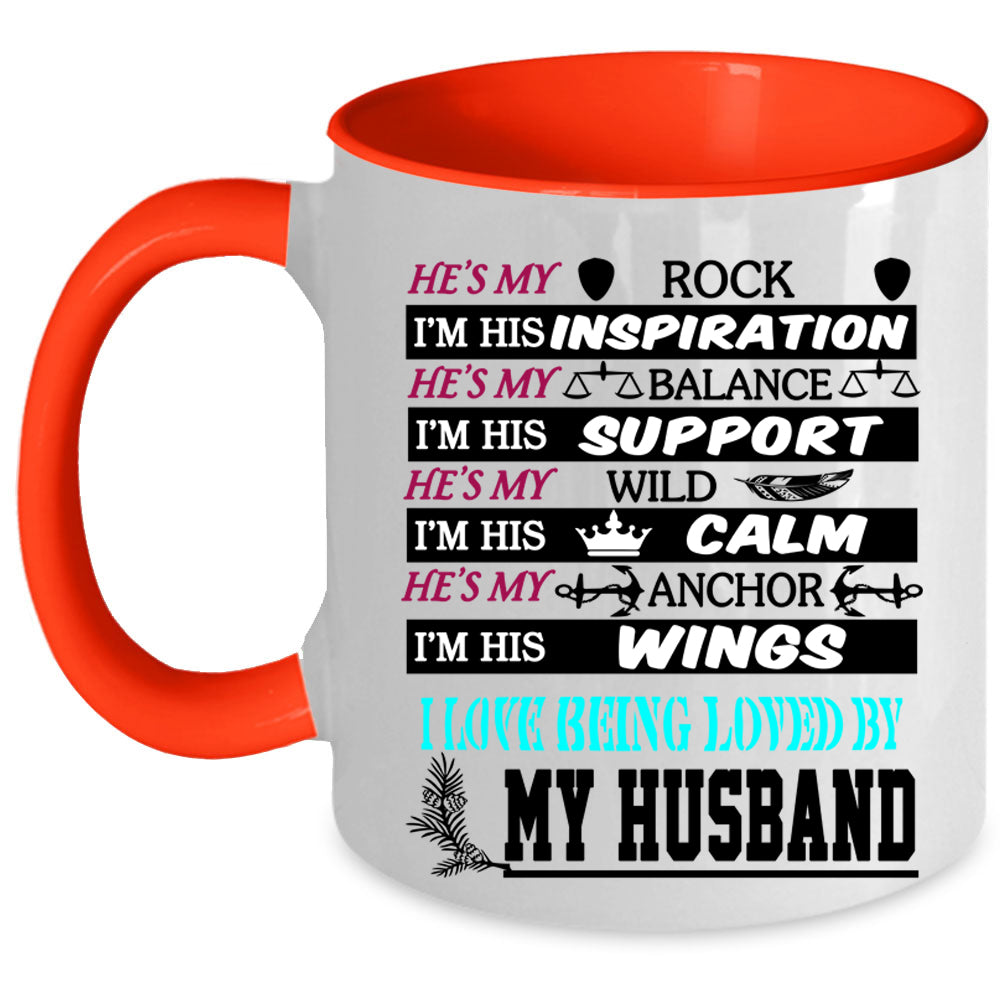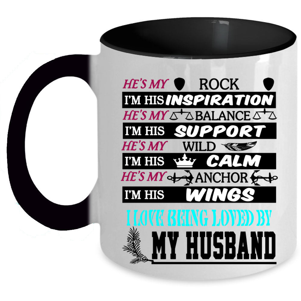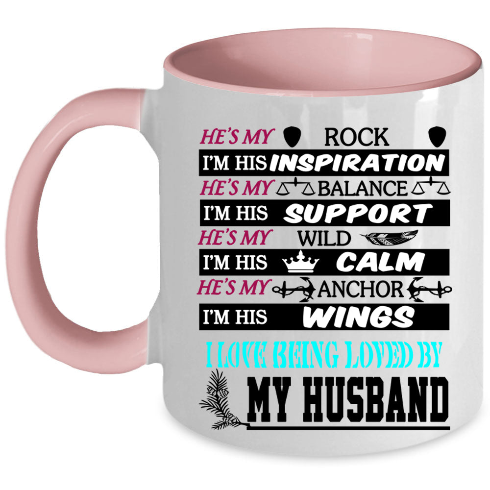 I Love Being Loved By My Husband Coffee Mug, He's My Rock Accent Mug