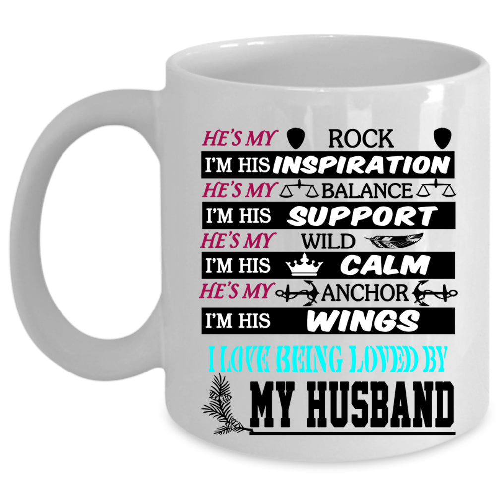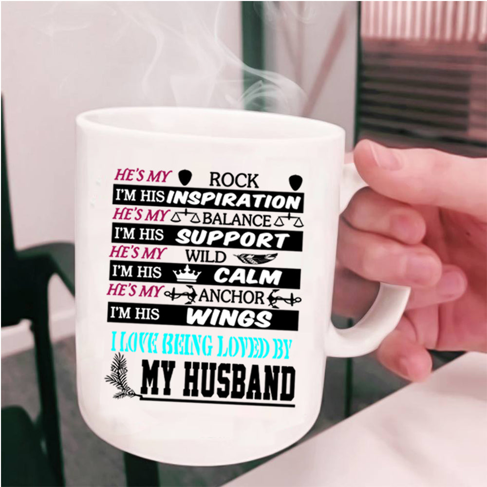 I Love Being Loved By My Husband Coffee Mug, He's My Rock Cup