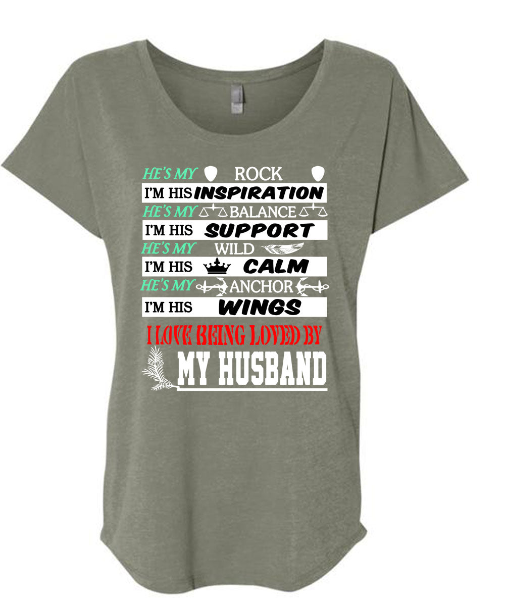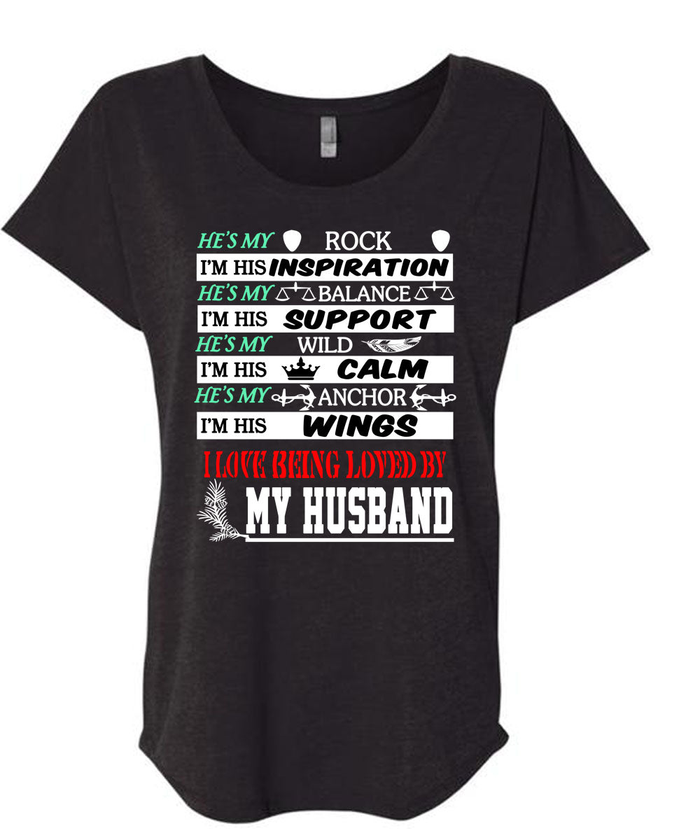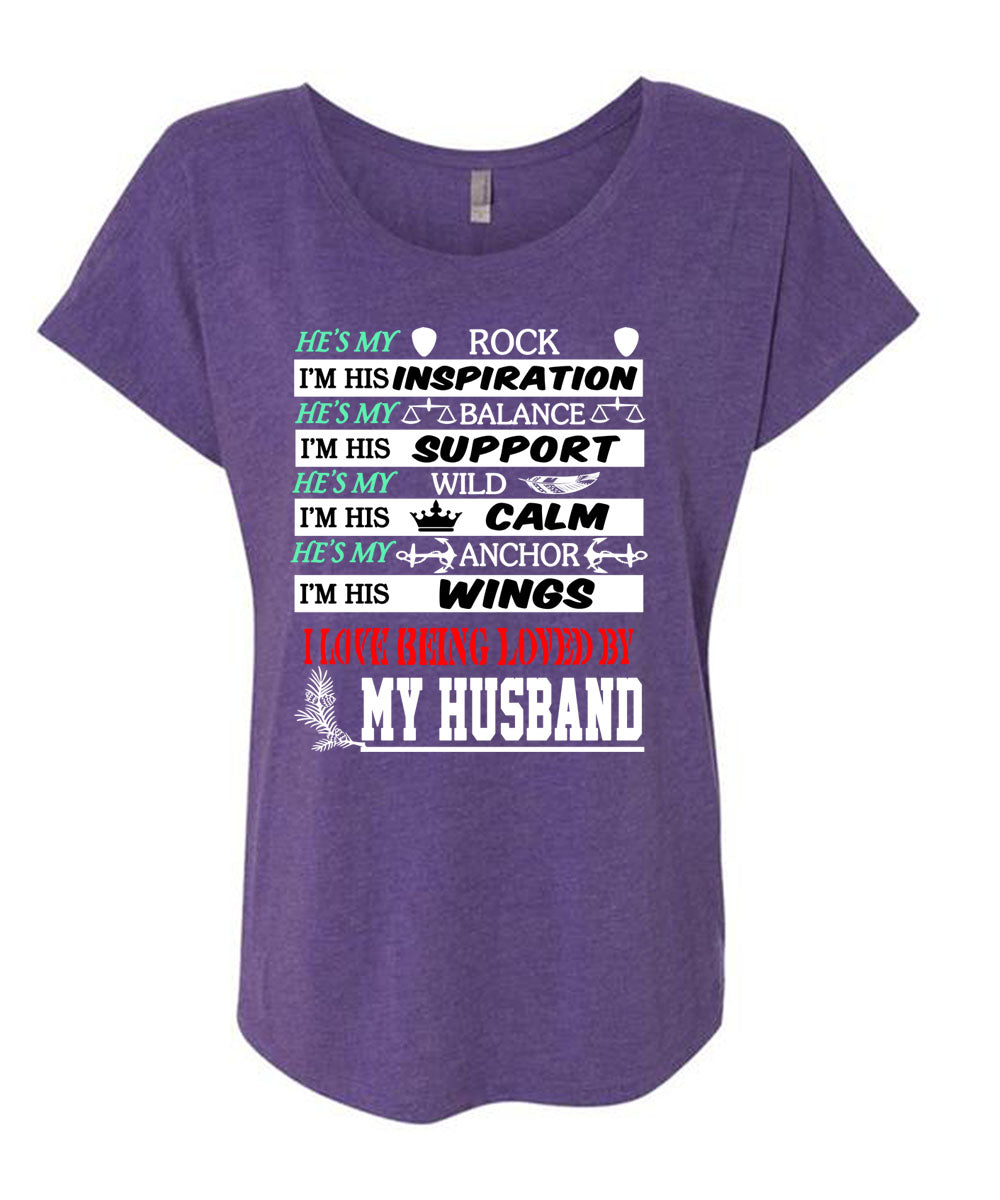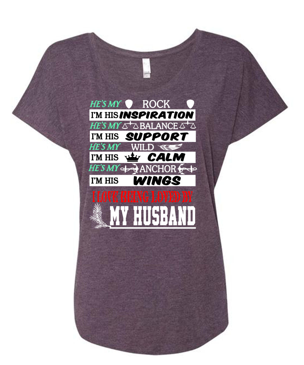 I Love Being Loved By My Husband T Shirt, I'm His Wings T Shirt, Cool Shirt (Ladies' Triblend Dolman Sleeve)