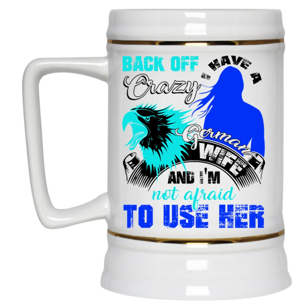 I Love German Wife Beer Stein 22oz, I Have A Crazy German Wife Beer Mug