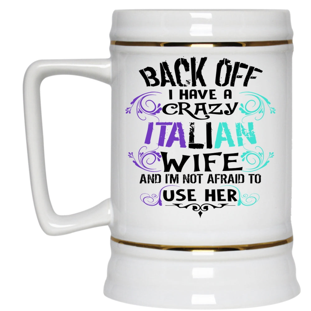 I Love Italian Wife Beer Stein 22oz, I Have A Crazy Italian Wife Beer Mug