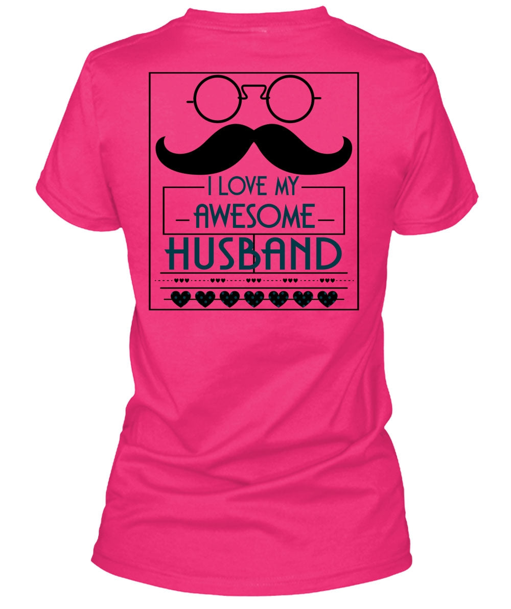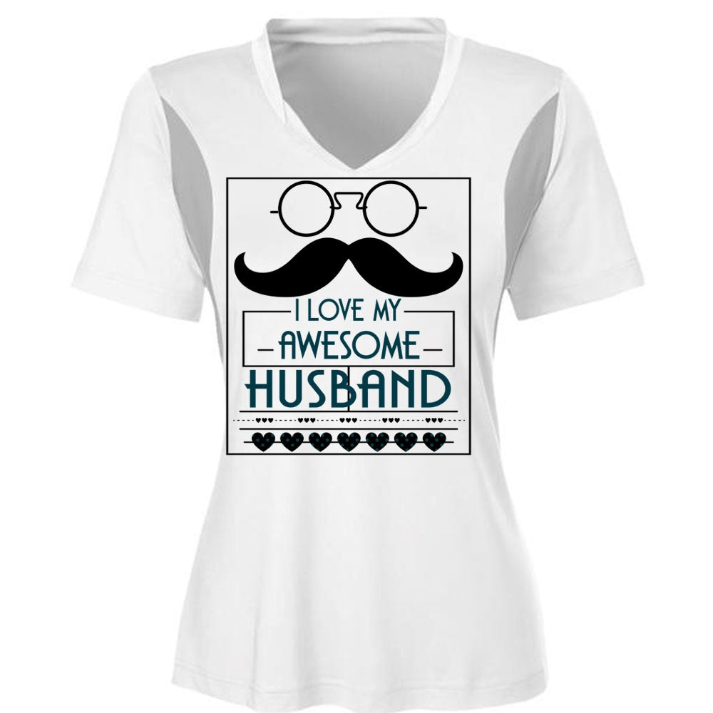 I Love My Awesome Husband T Shirt, Being A Wife T Shirt, Cool Shirt (Ladies LS Heather V-Neck)