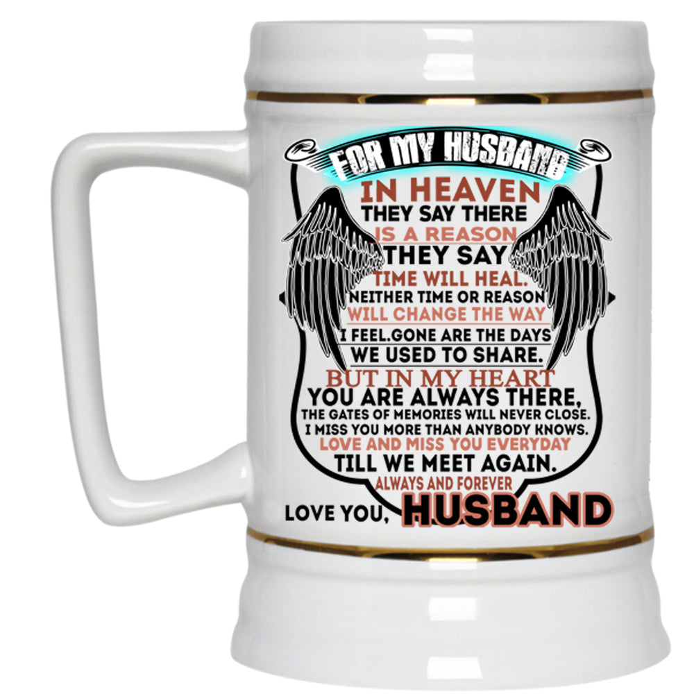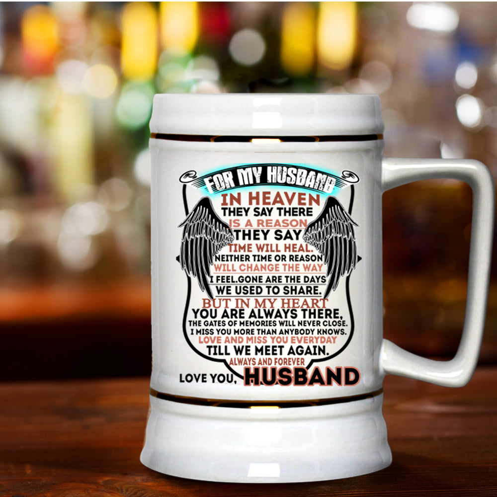 I Love My Husband Beer Stein 22oz, For My Husband In Heaven Beer Mug