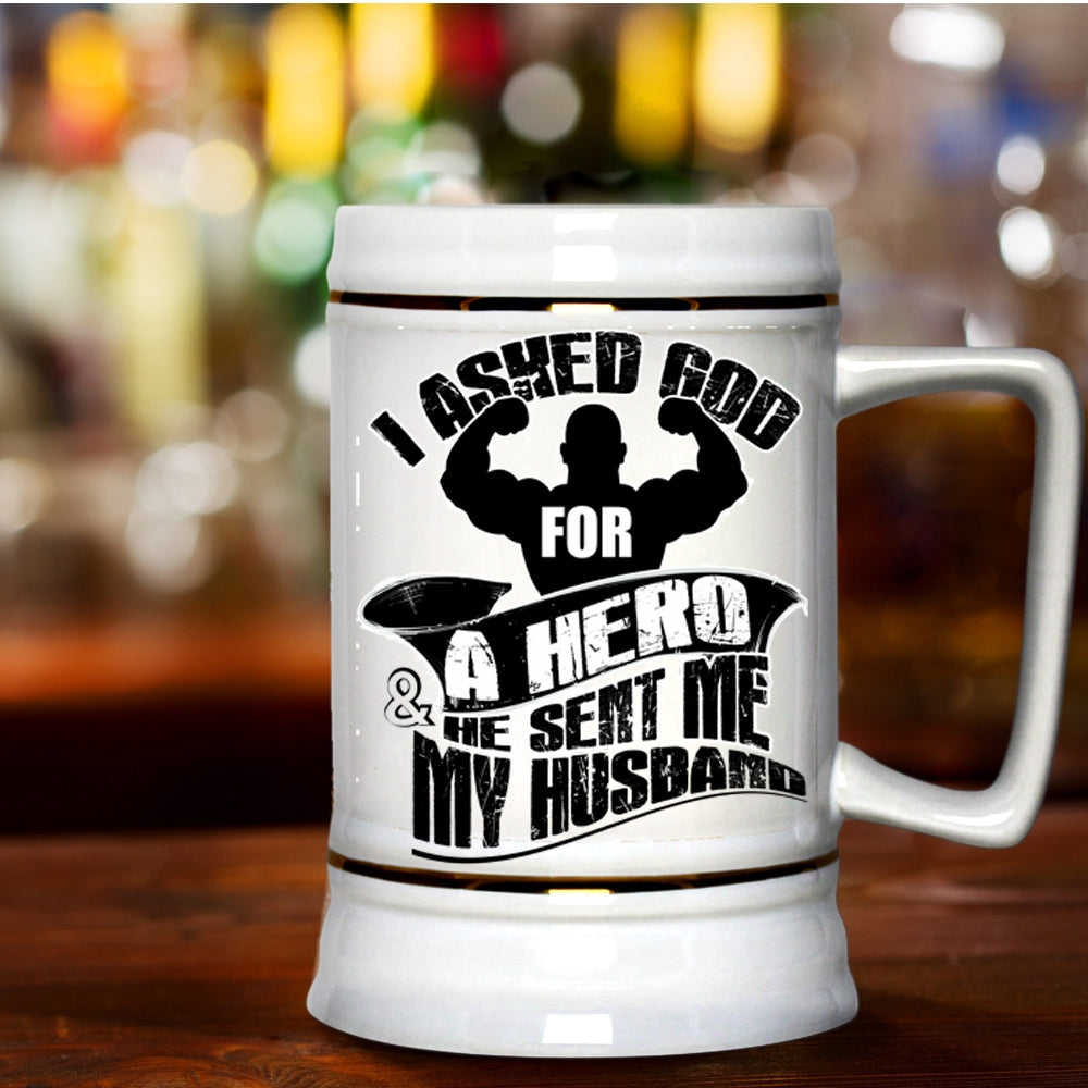 I Love My Husband Beer Stein 22oz, God Sent Me My Husband Beer Mug