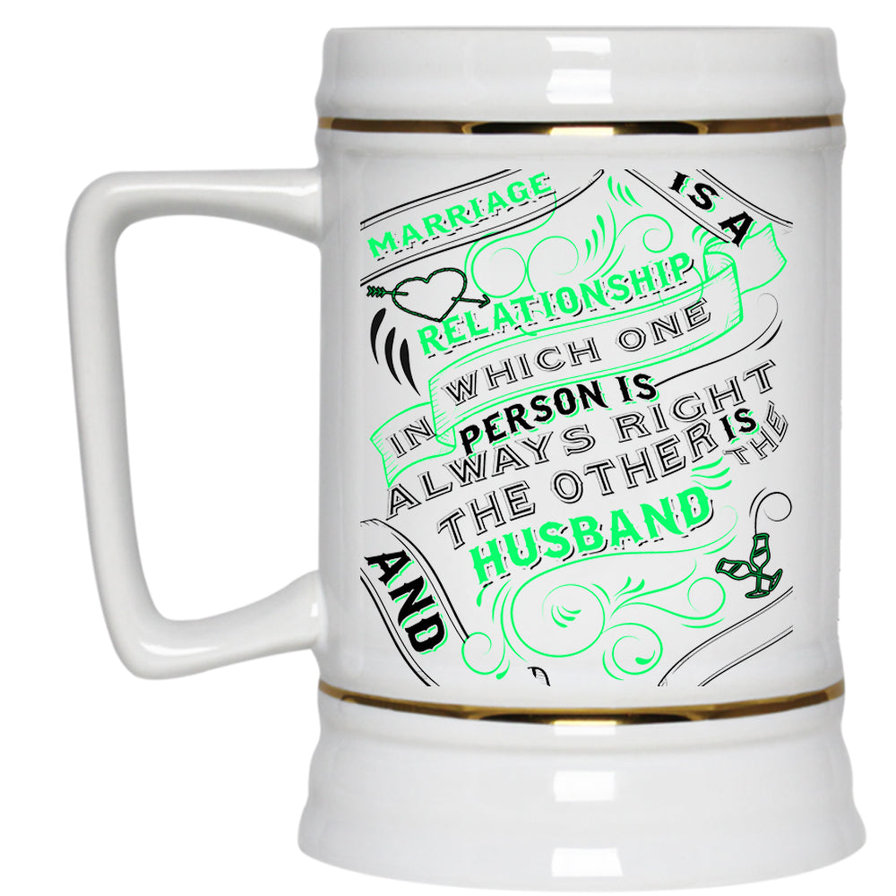 I Love My Husband Beer Stein 22oz, Marriage is A Relationship Beer Mug