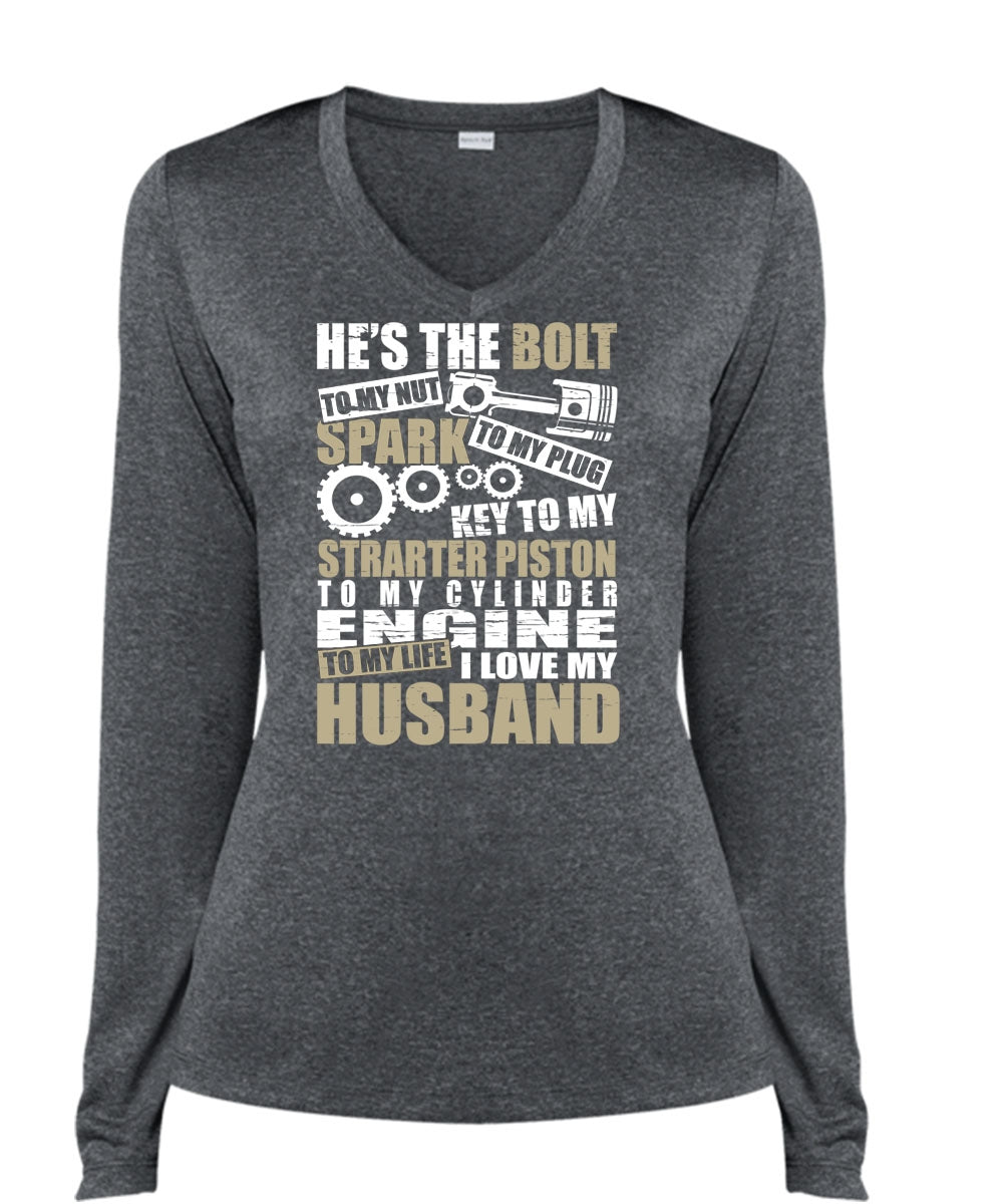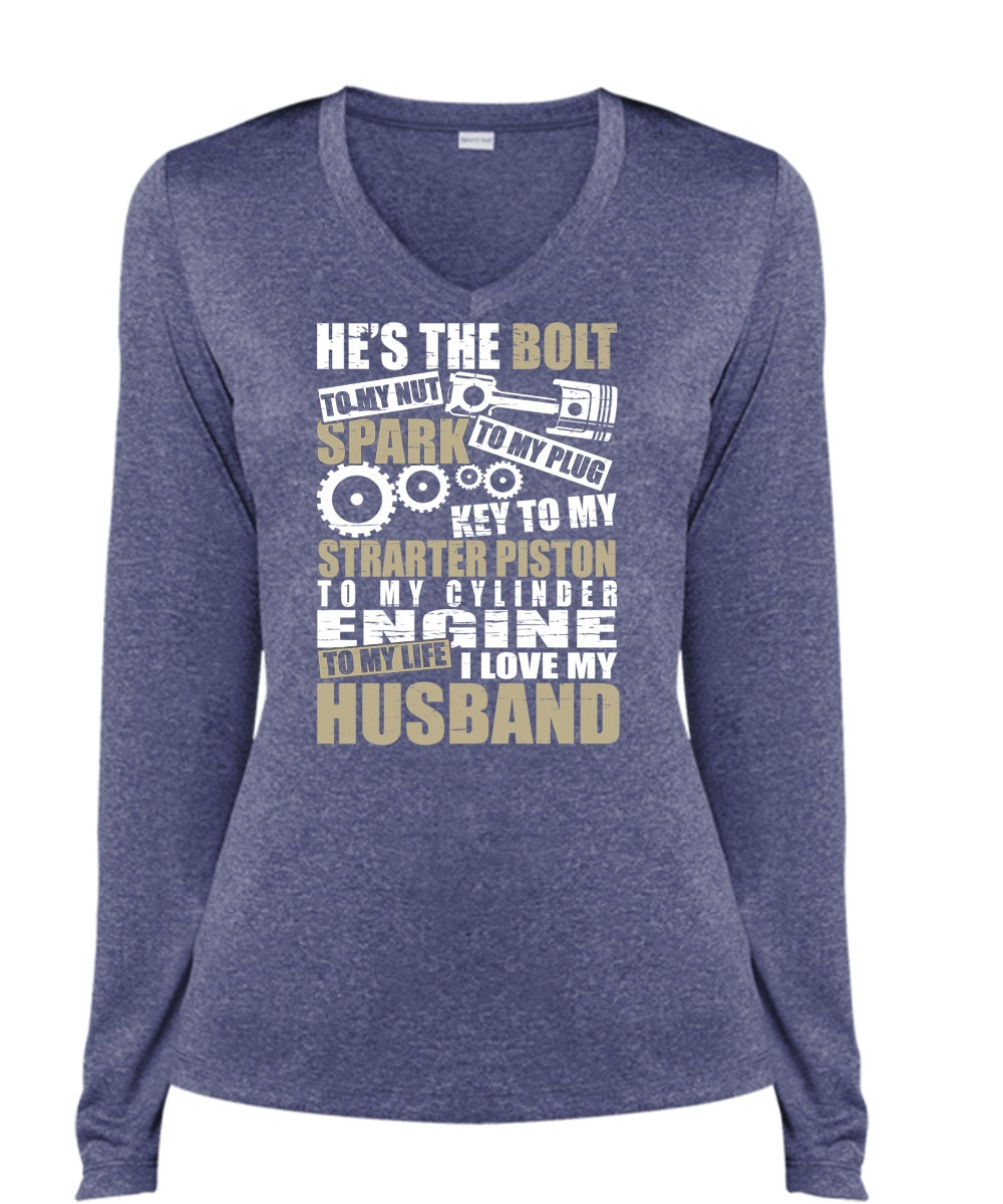 I Love My Husband T Shirt, He's The Bolt T Shirt, Cool Shirt (Ladies LS Heather V-Neck)