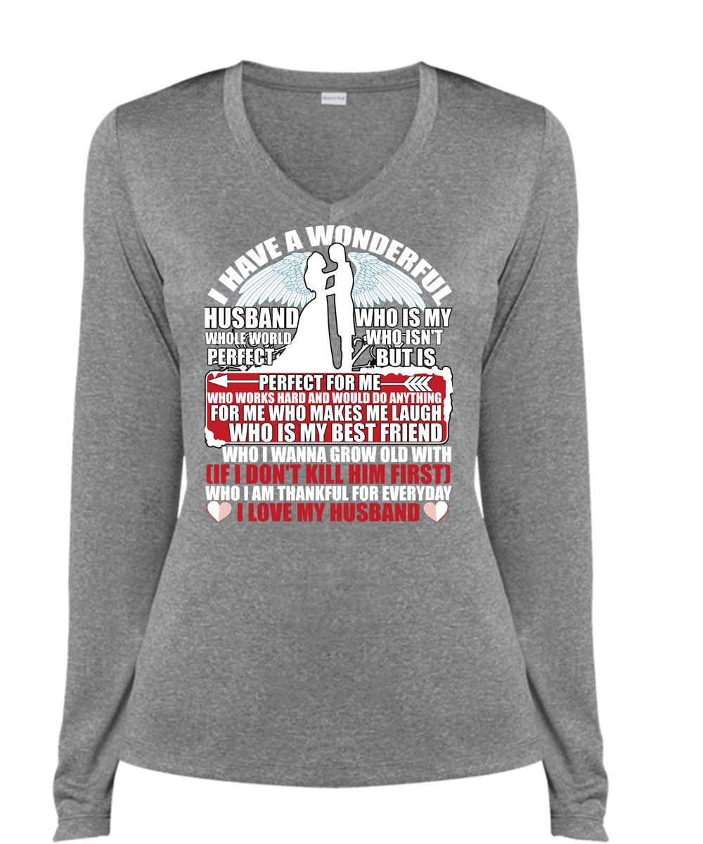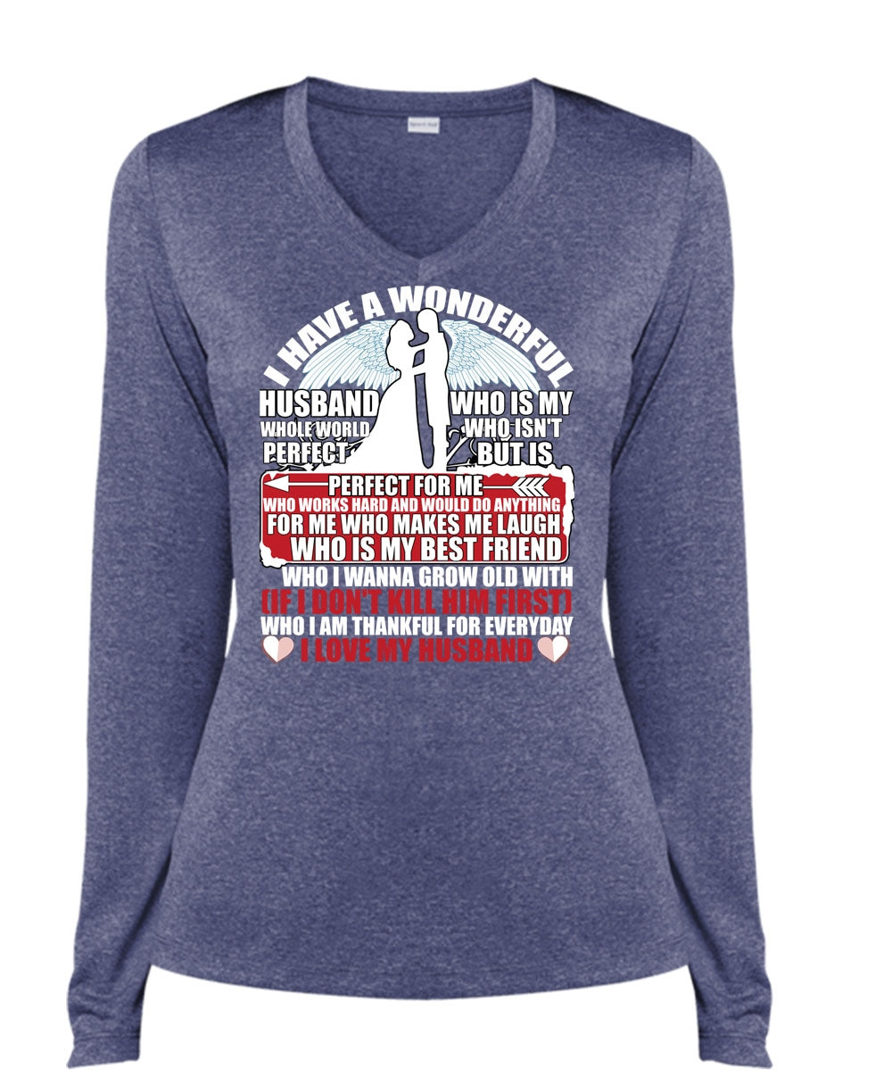 I Love My Husband T Shirt, I Have A Wonderful T Shirt, Cool Shirt (Ladies LS Heather V-Neck)