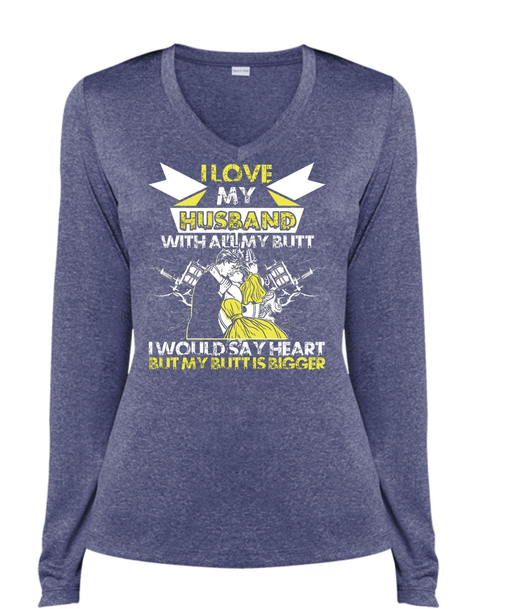 I Love My Husband T Shirt, I Would Say Heart T Shirt, Cool Shirt (Ladies LS Heather V-Neck)
