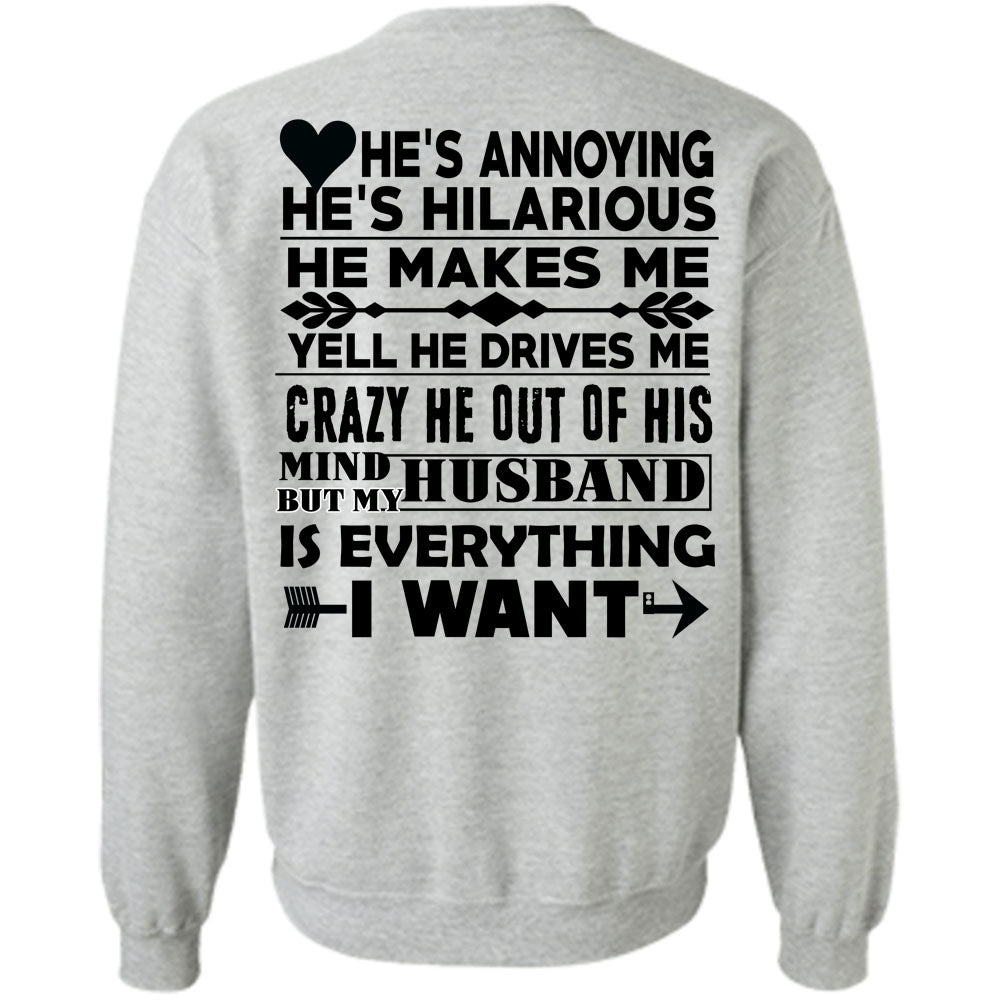 I Love My Husband T Shirt, My Husband Is Everything I Want Sweatshirt