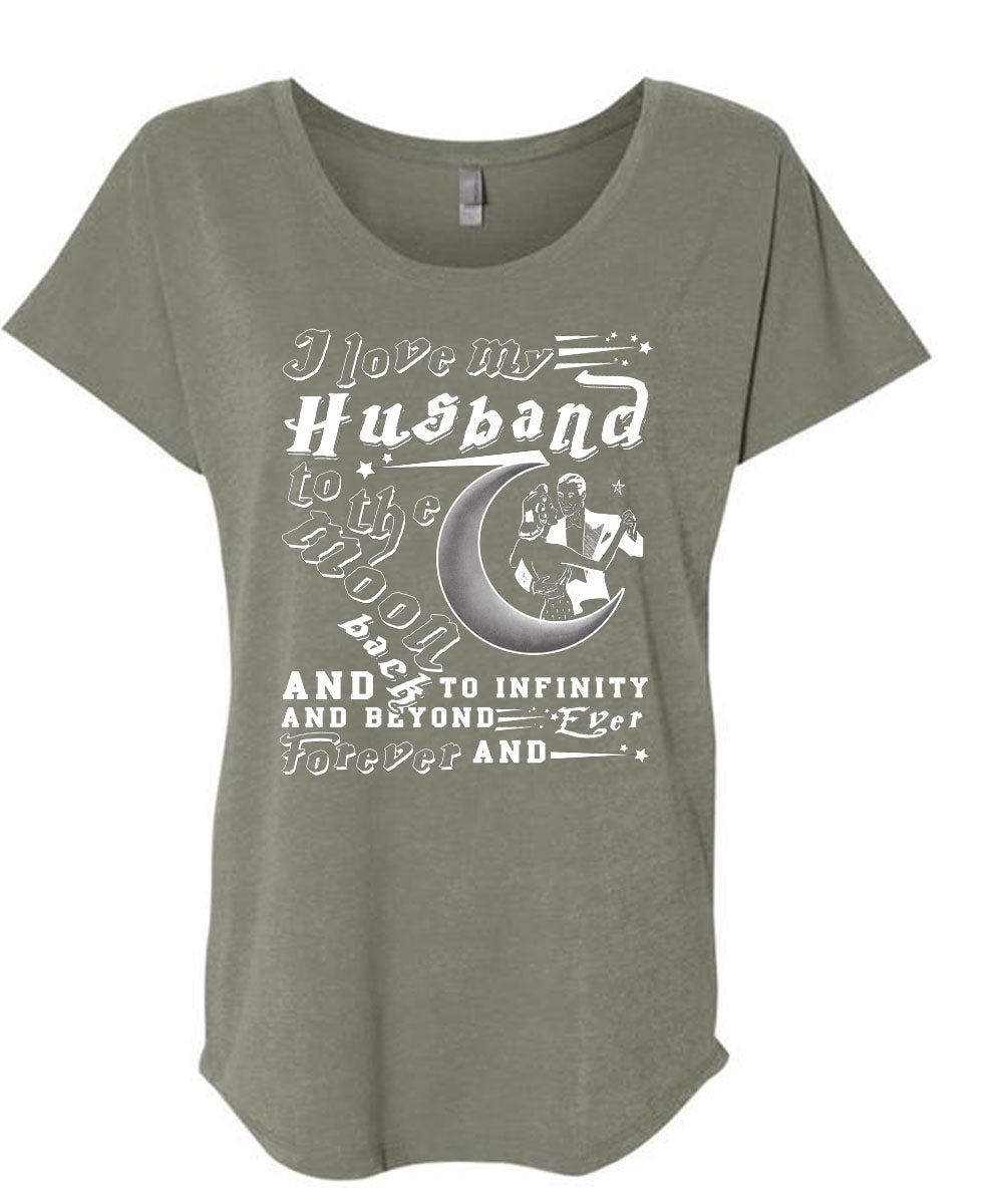 I Love My Husband To The Moon And Back T Shirt, I Am A Husband T Shirt, Cool Shirt (Ladies' Triblend Dolman Sleeve)