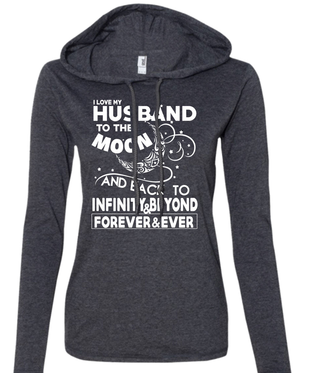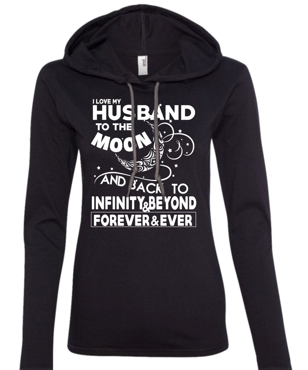 I Love My Husband To The Moon T Shirt, Back To Infinity And Beyond T Shirt (Anvil Ladies Ringspun Hooded)