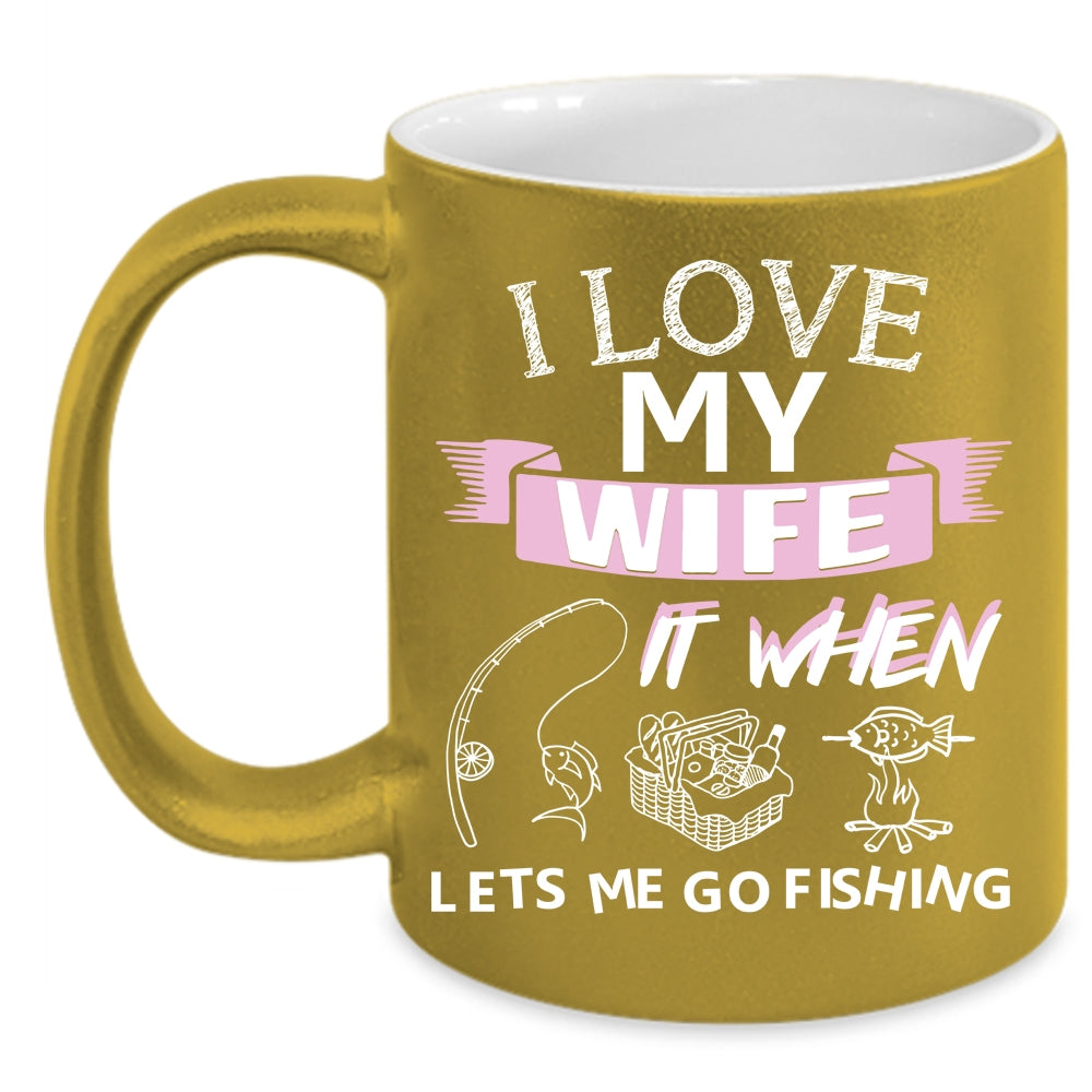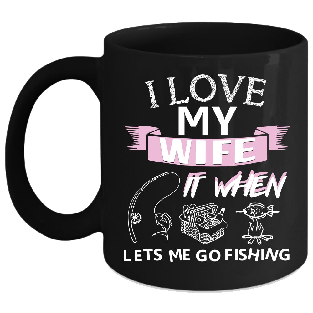 I Love My Wife Coffee Mug, When Lets Me Go Fishing Coffee Cup