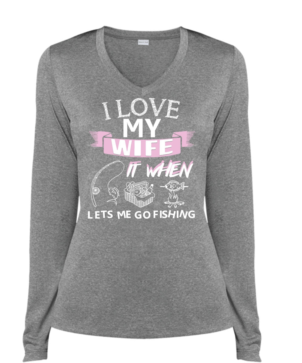 I Love My Wife If When Lets Me Go Fishing T Shirt, Sport T Shirt (Ladies LS Heather V-Neck)