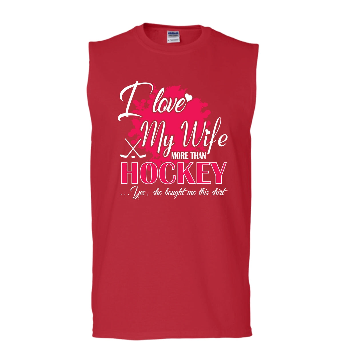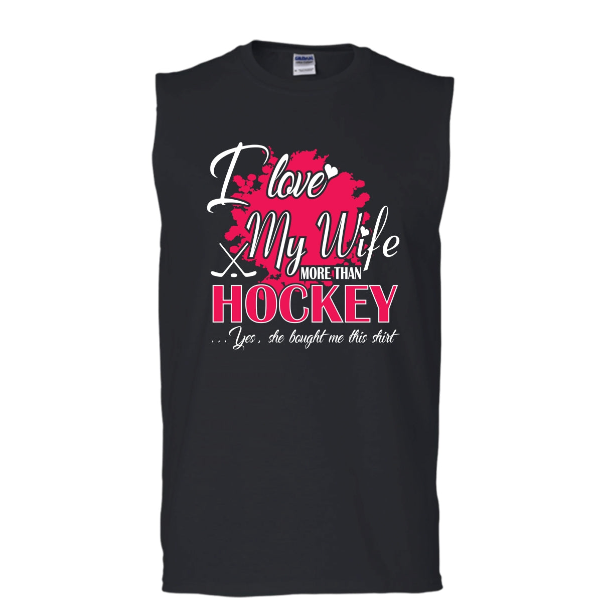 I Love My Wife More Than Hockey Shirt, Yes He Bough Me This Shirt (Men's Cotton Sleeveless)