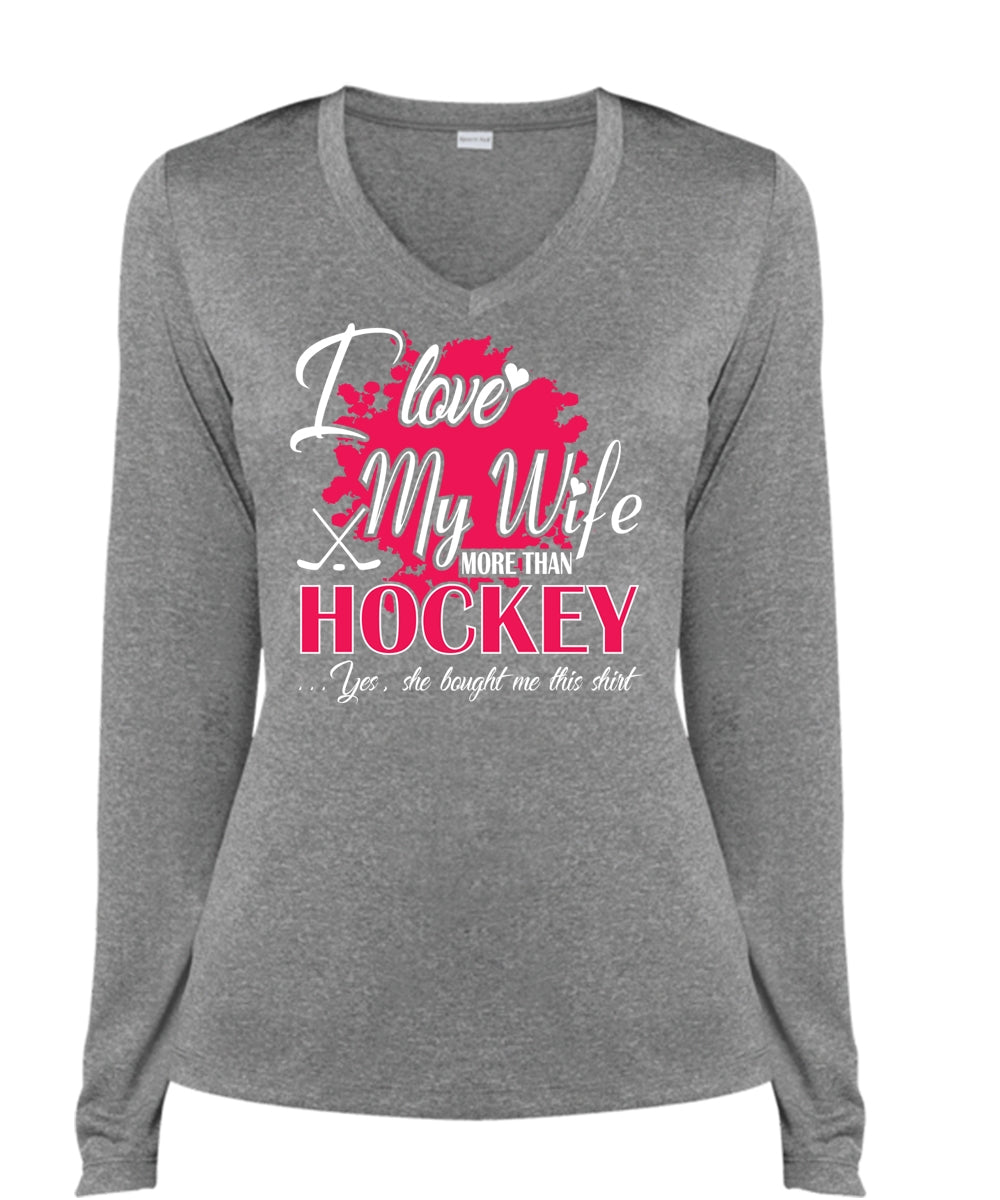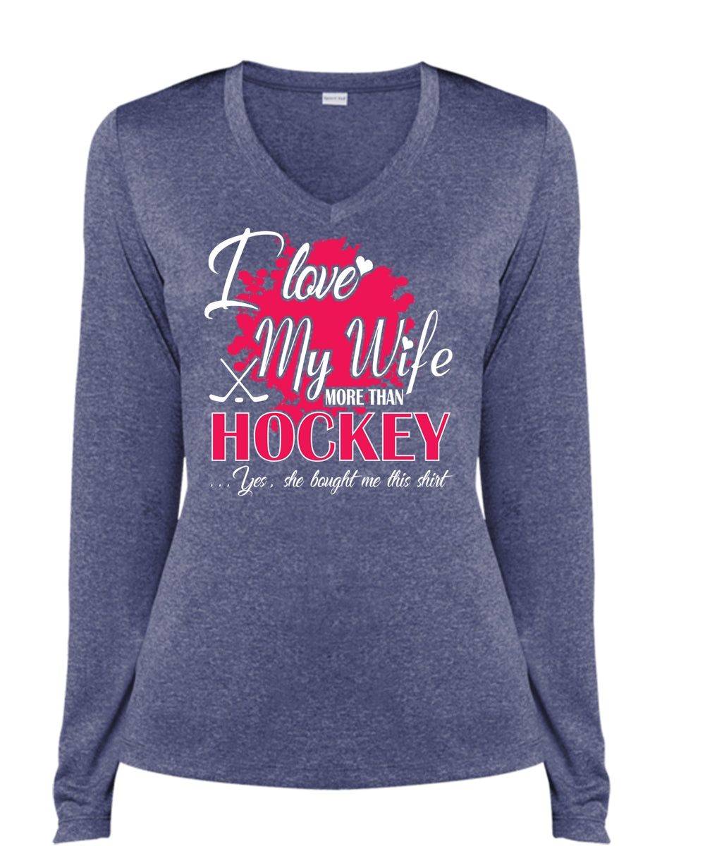 I Love My Wife More Than Hockey T Shirt, Sport T Shirt (Ladies LS Heather V-Neck)