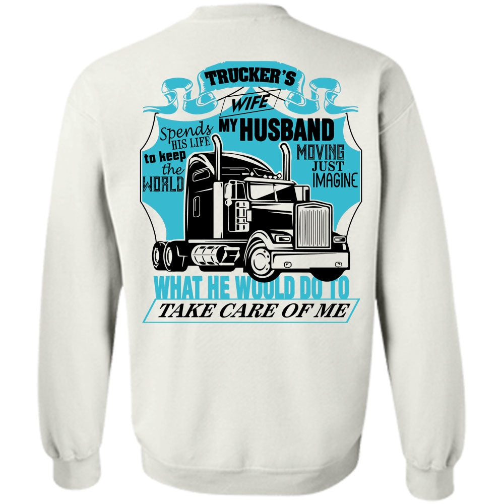 I Love Trucking T Shirt, Trucker's Wife Spends My Husband Sweatshirt