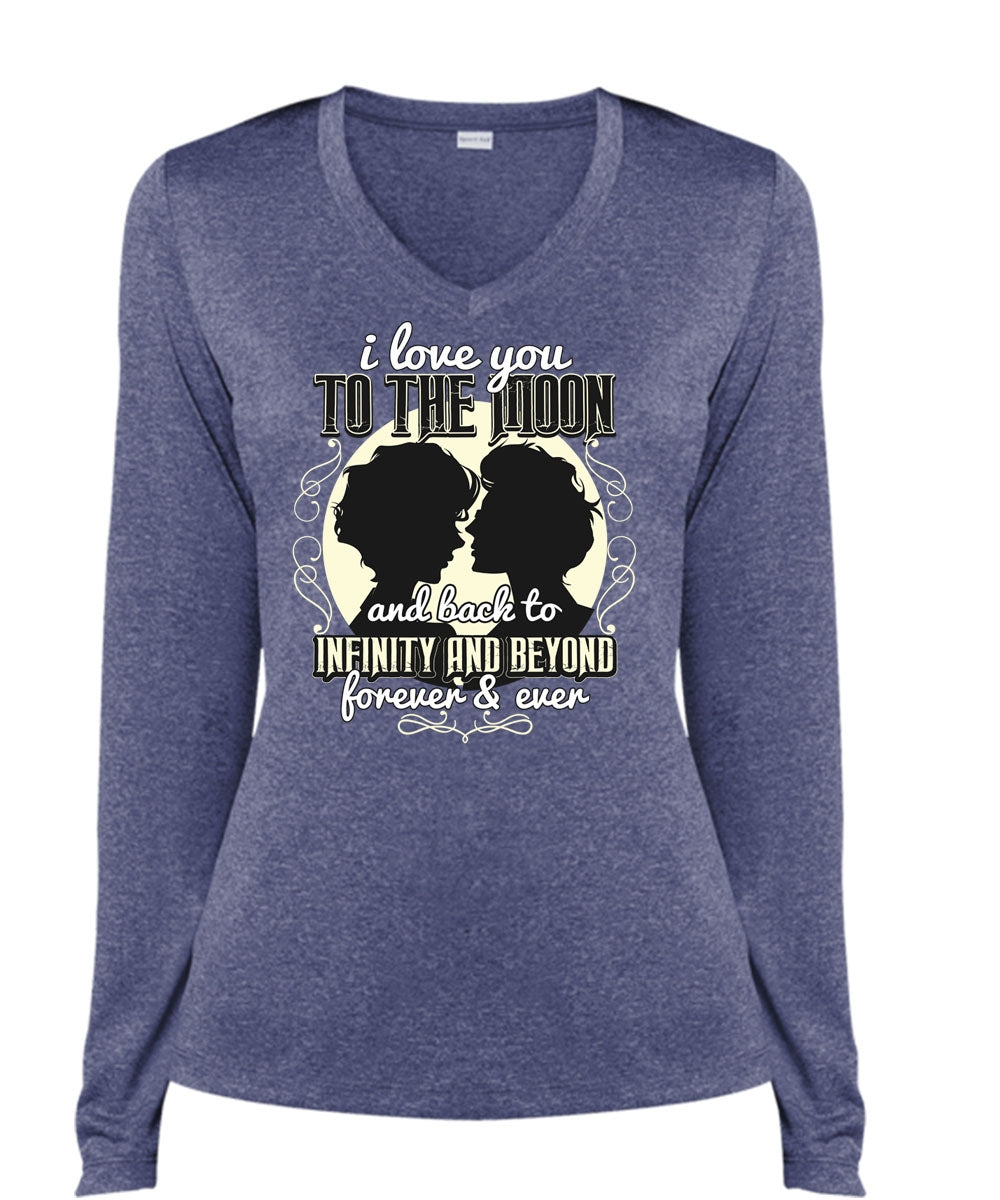 I Love You To The Moon And Back T Shirt, Being A Husband T Shirt, Cool Shirt (Ladies LS Heather V-Neck)
