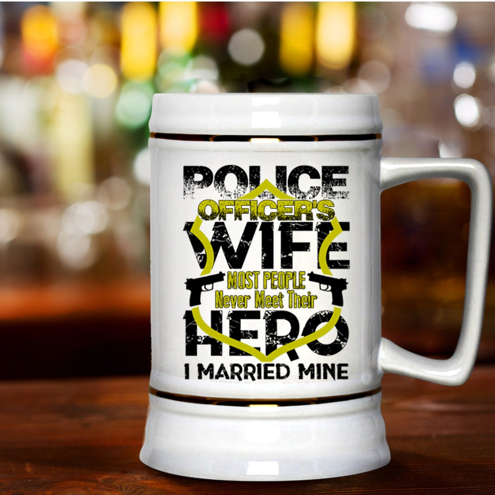 I Married Policeman Beer Stein 22oz, Police Officer's Wife Beer Mug