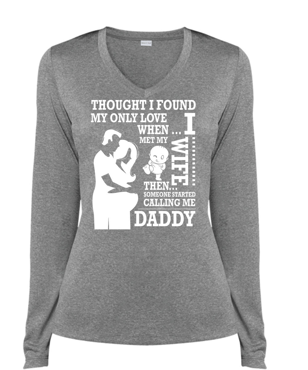 I Met My Wife T Shirt, Calling Me Daddy T Shirt, Cool Shirt (Ladies LS Heather V-Neck)