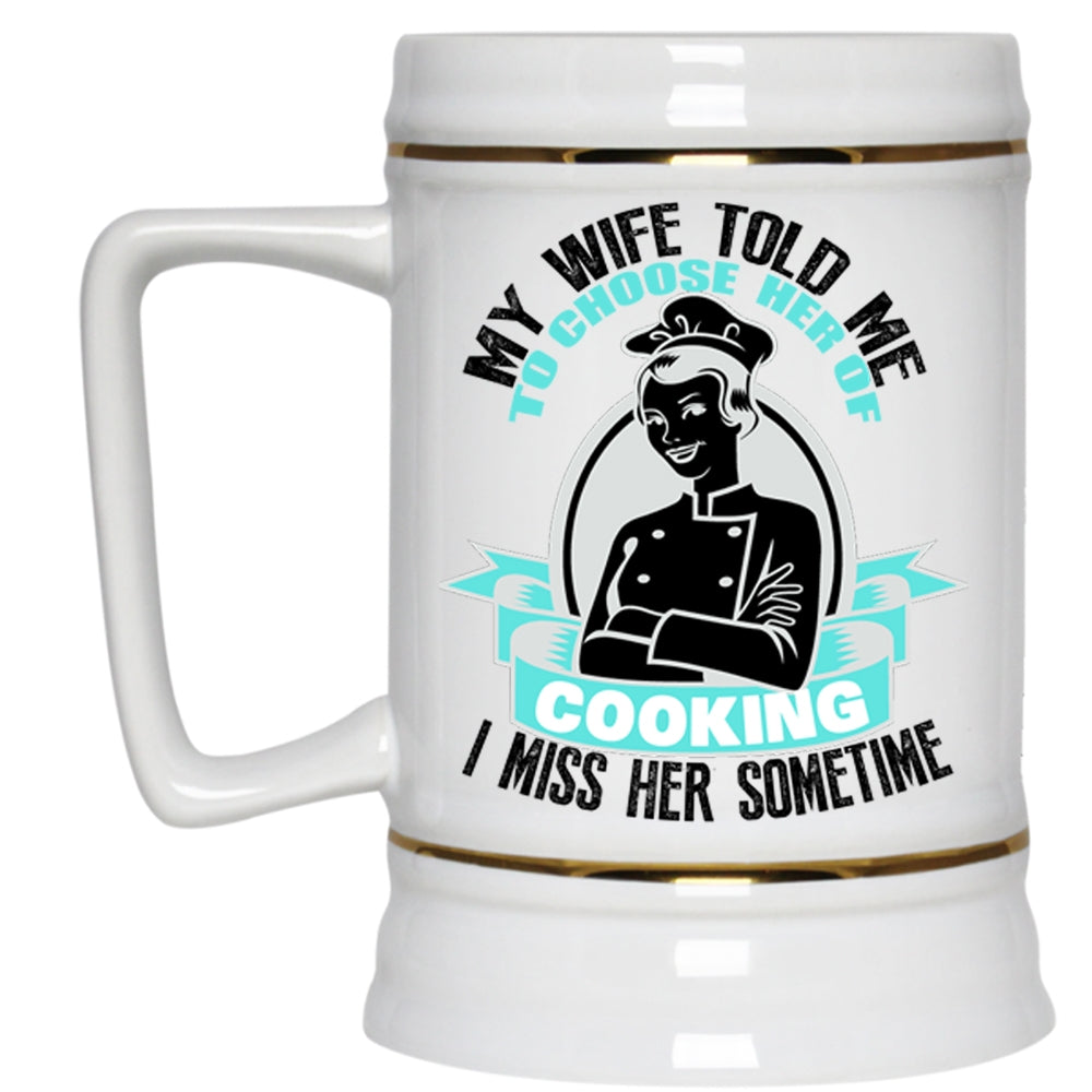 I Miss Her Sometime Beer Stein 22oz, My Wife Told Me To Choose Her Of Cooking Beer Mug
