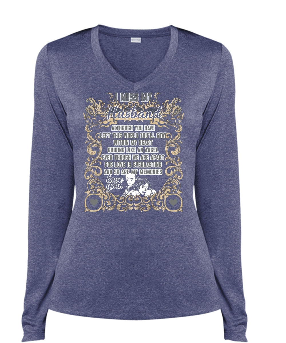 I Miss My Husband T Shirt, Love You T Shirt, Cool Shirt (Ladies LS Heather V-Neck)