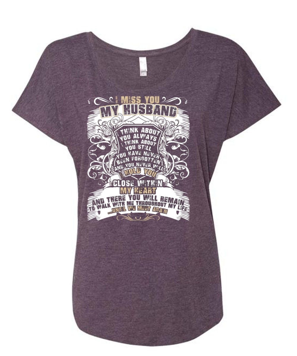 I Miss You My Husband T Shirt, Close Within My Heart T Shirt, Cool Shirt (Ladies' Triblend Dolman Sleeve)