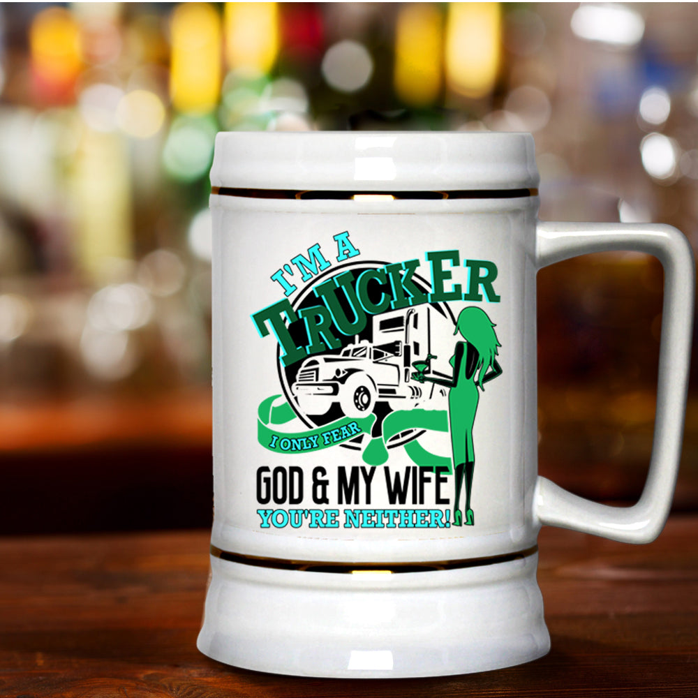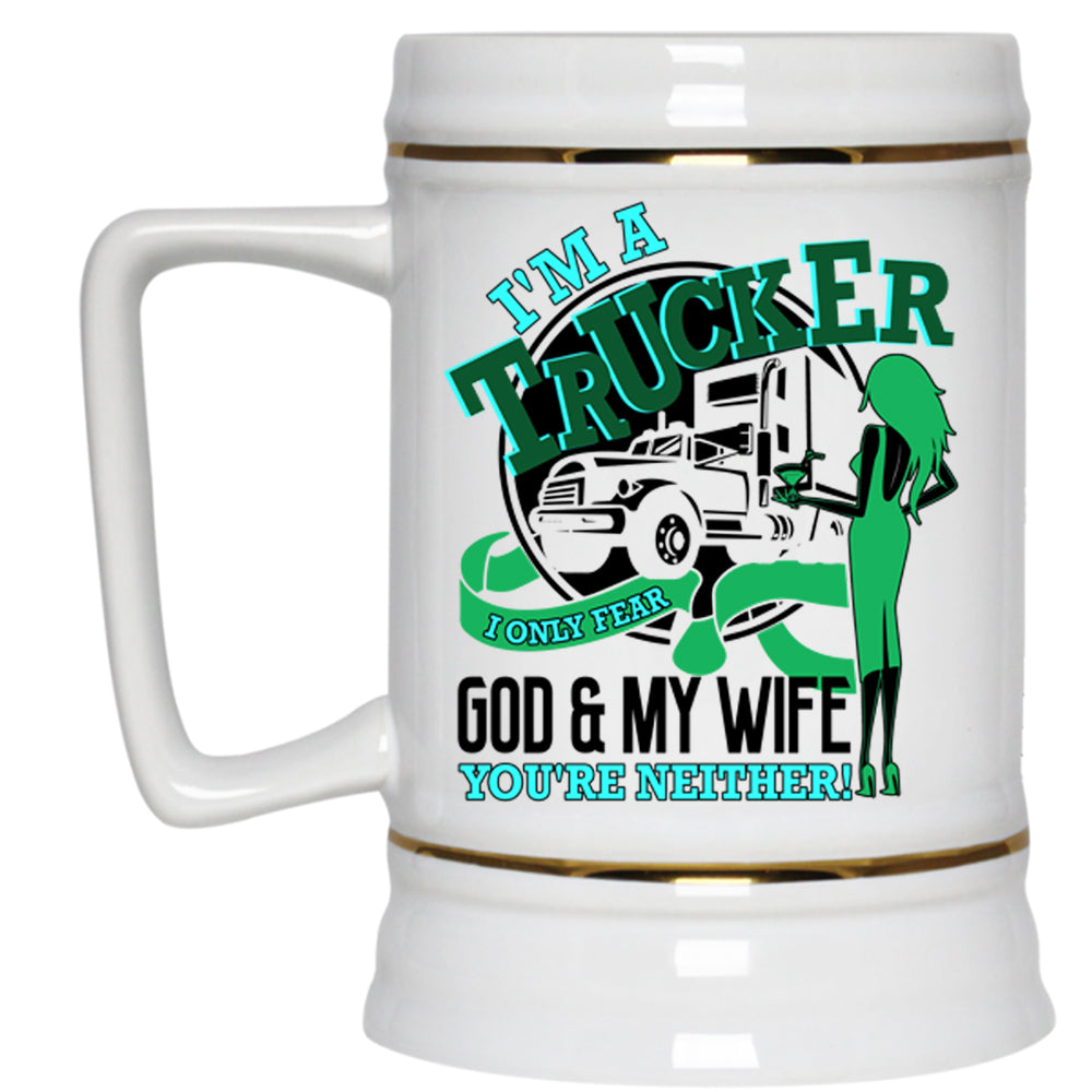 I Only Fear God And My Wife Beer Stein 22oz, I'm A Trucker Beer Mug