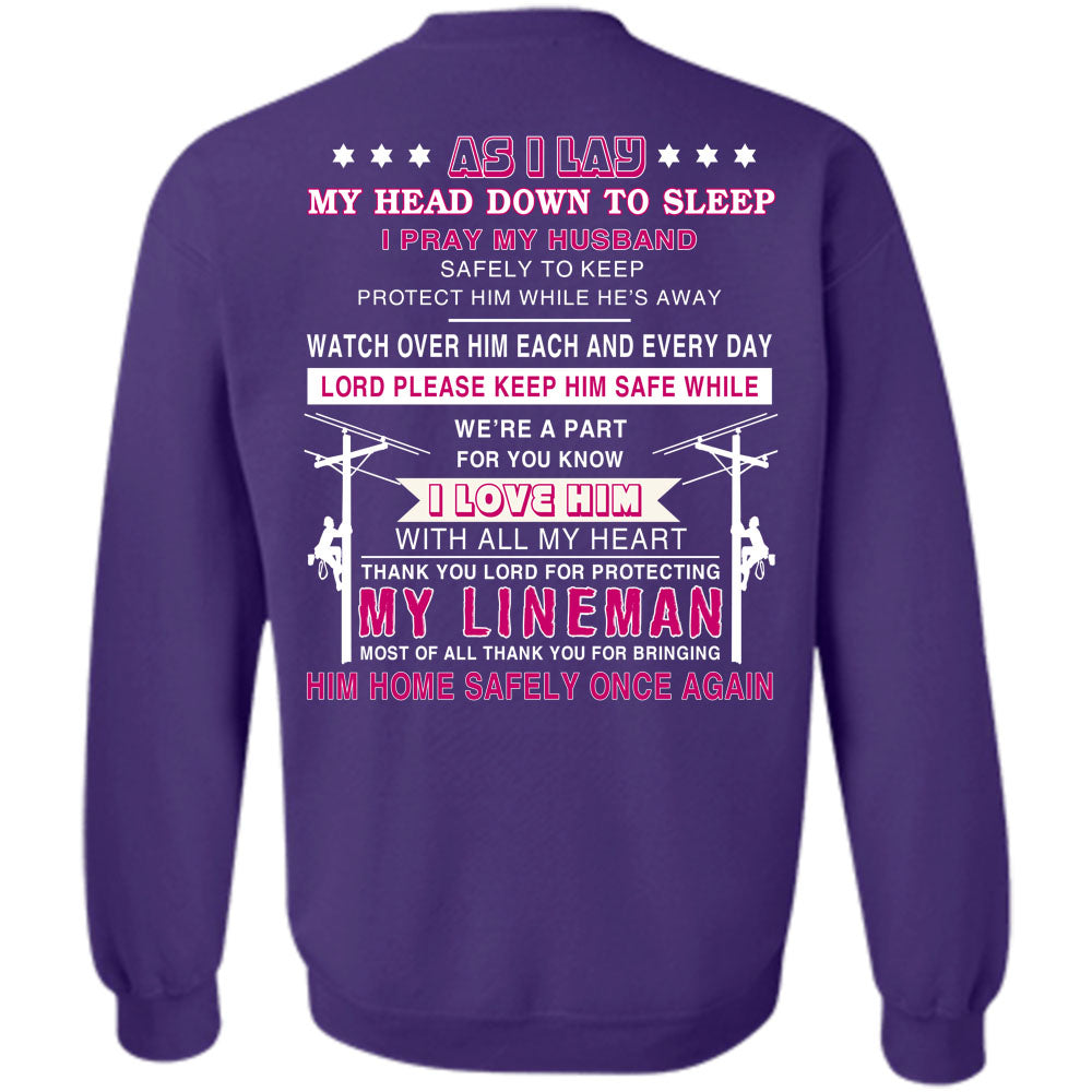 I Pray My Husband Safely To Keep T Shirt, Being A Lineman Sweatshirt