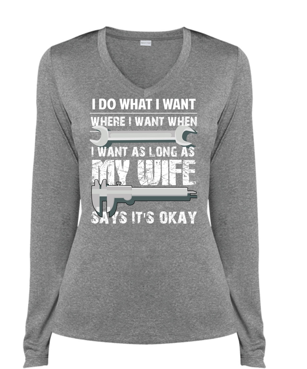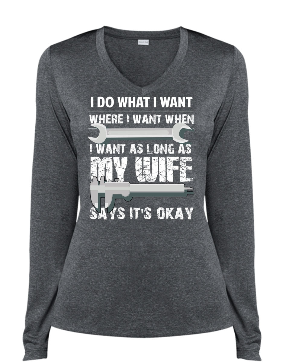 I Want As Long As My Wife T Shirt, I Love Husband T Shirt, Cool Shirt (Ladies LS Heather V-Neck)
