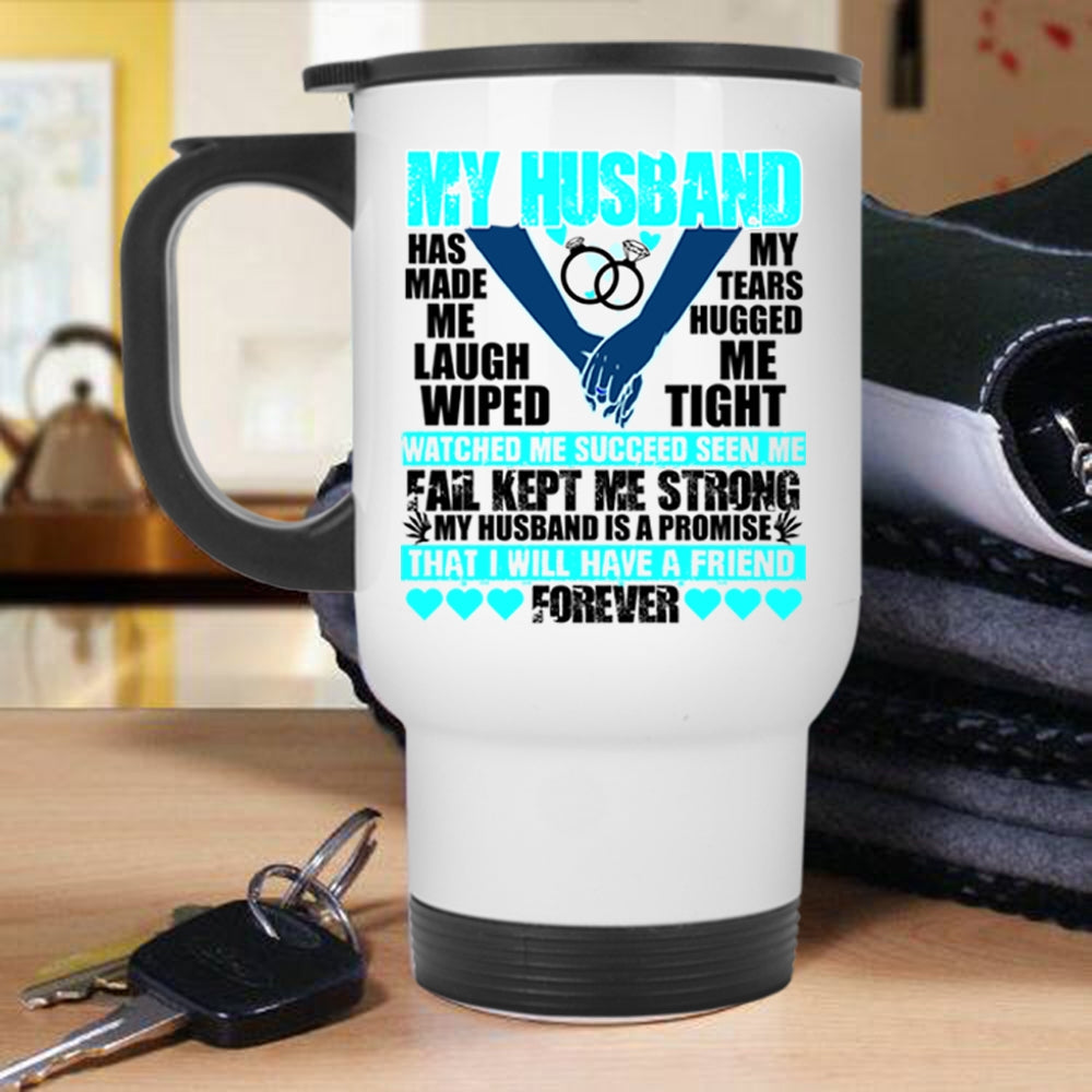 I Will Have A Friend Forever Travel Mug, My husband Has Made Me Laugh Mug
