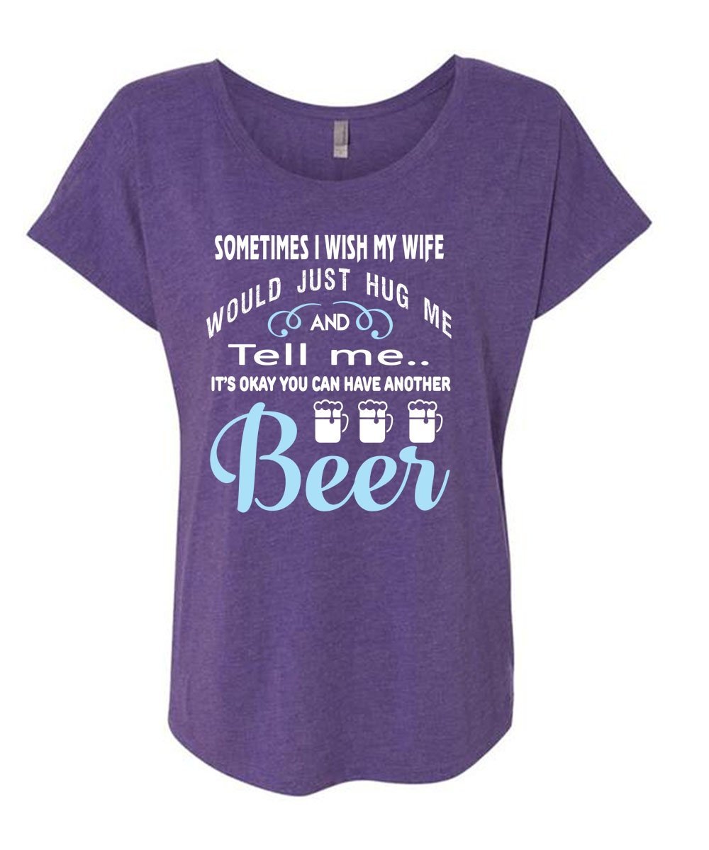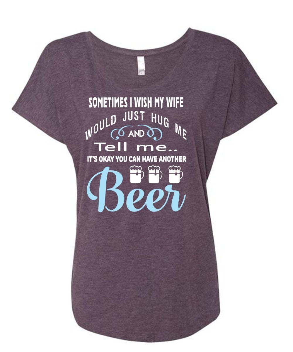 I Wish My Wife Would Just Hug Me T Shirt, Tell Me You Can Have Another Beer T Shirt (Ladies' Triblend Dolman Sleeve)