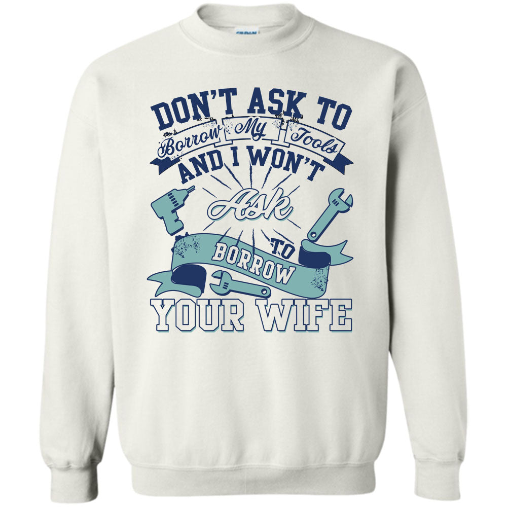 I Won't Ask To Borrow Your Wife T Shirt, Don't Ask To Borrow My Tools Sweatshirt