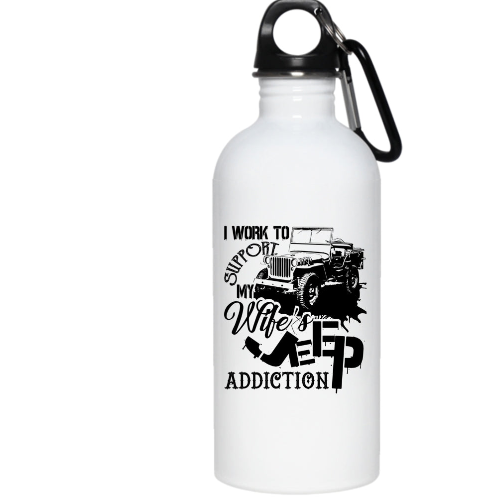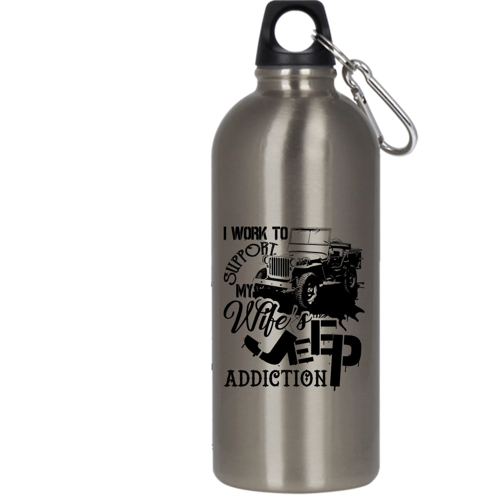 I Work To Support 20 oz Stainless Steel Bottle,My Wife's Jeep Addiction Outdoor Sports Water Bottle