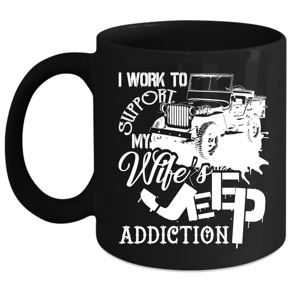 I Work To Support Coffee Mug, My Wife's Jeep Addiction Coffee Cup