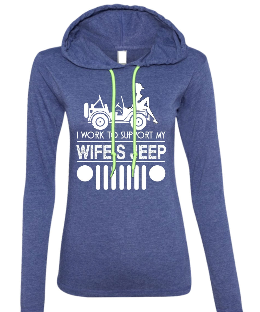 I Work To Support My Wife's Jeep T Shirt, Being A Driver T Shirt (Anvil Ladies Ringspun Hooded)