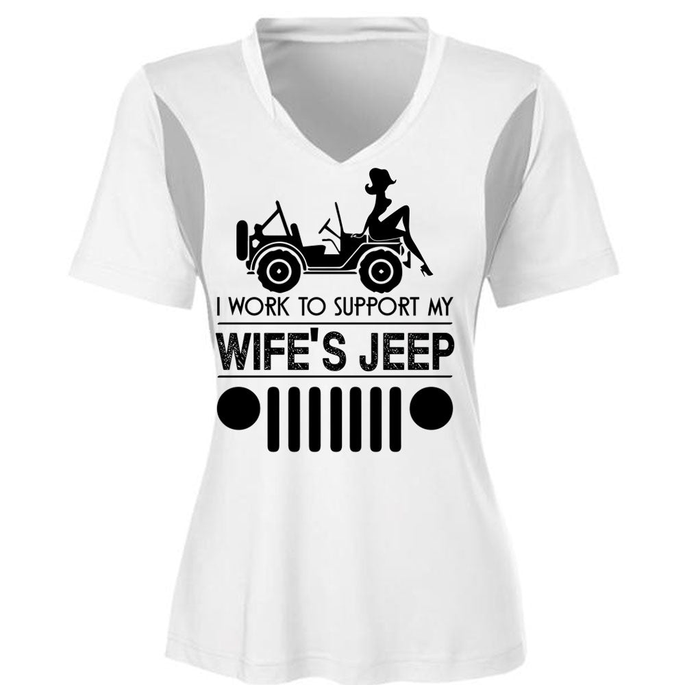 I Work To Support My Wife's Jeep T Shirt, Being A Driver T Shirt, Cool Shirt (Ladies LS Heather V-Neck)