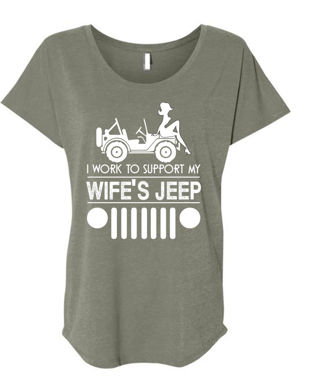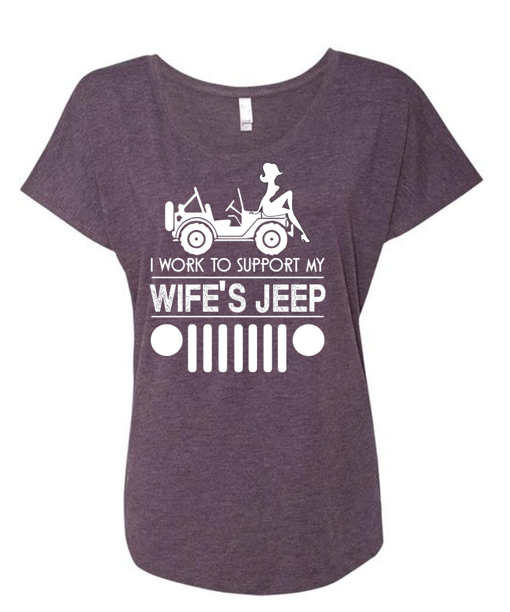 I Work To Support My Wife's Jeep T Shirt, Being A Driver T Shirt, Cool Shirt (Ladies' Triblend Dolman Sleeve)
