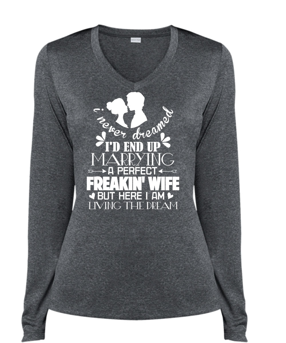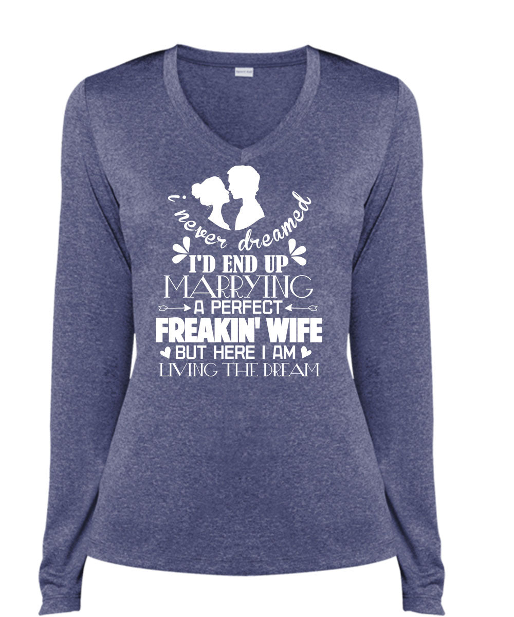 I'd End Up Marrying A Freaking Wife T Shirt, I Never Dreamed T Shirt, Cool Shirt (Ladies LS Heather V-Neck)
