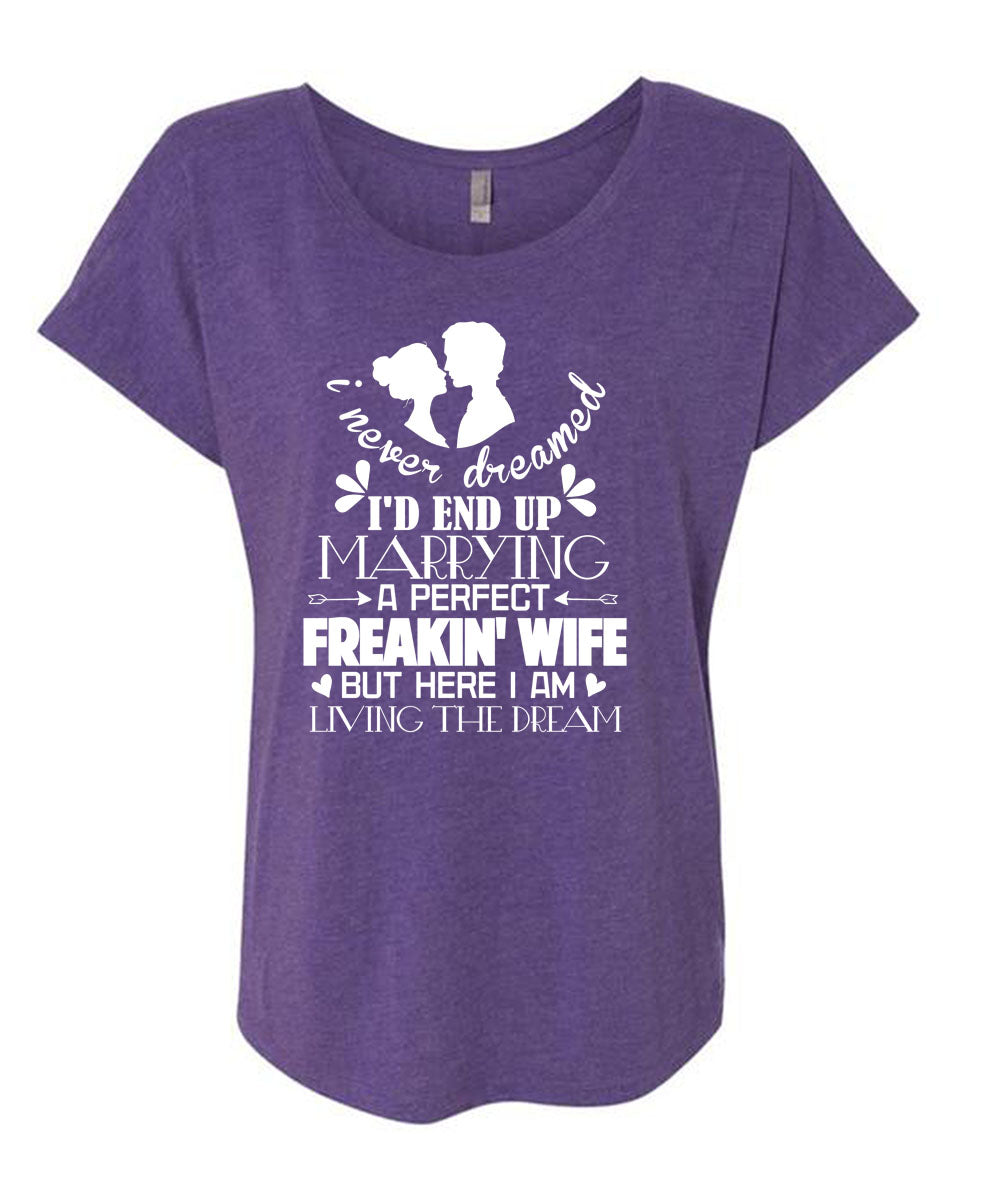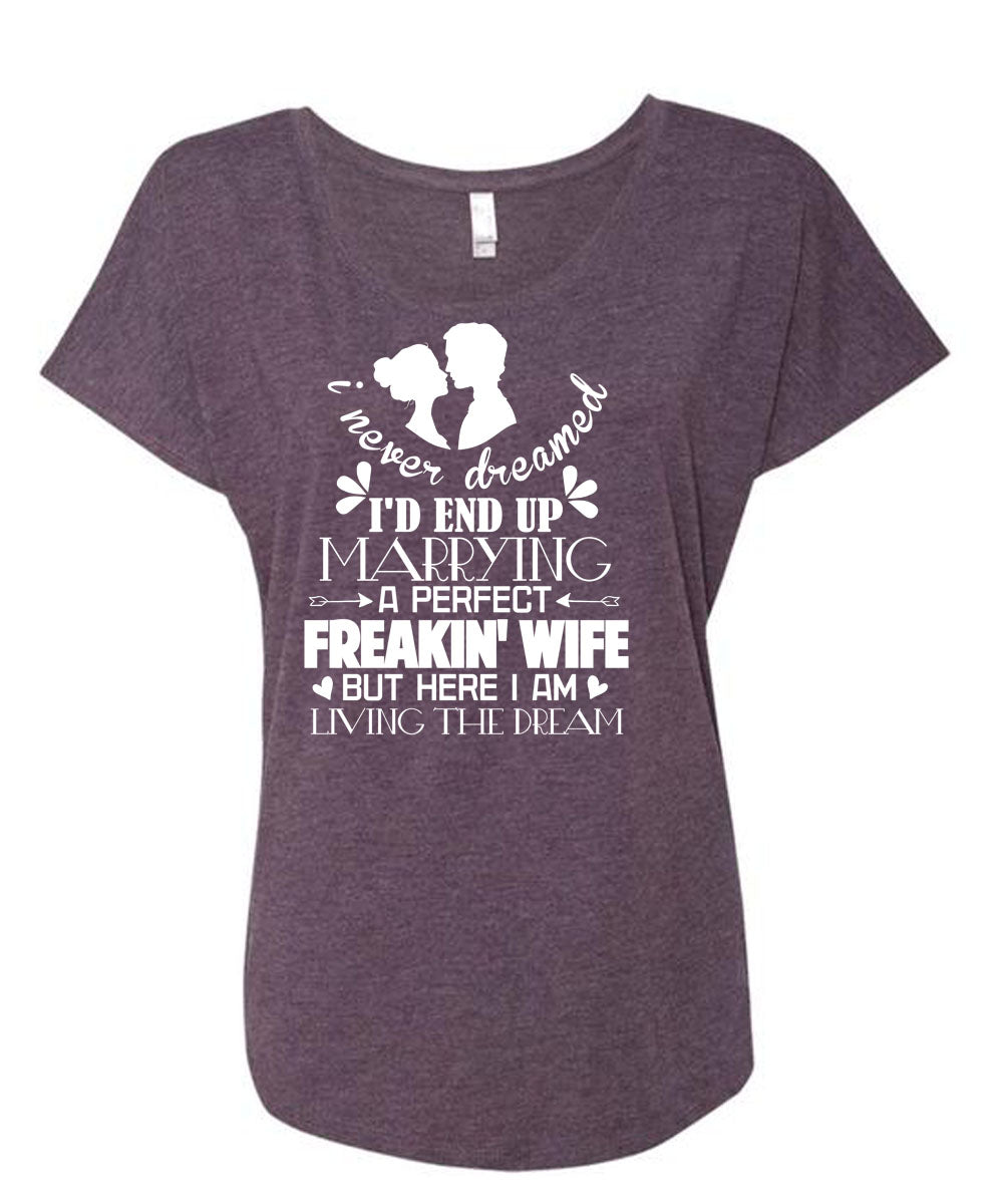 I'd End Up Marrying A Freaking Wife T Shirt, I Never Dreamed T Shirt, Cool Shirt (Ladies' Triblend Dolman Sleeve)