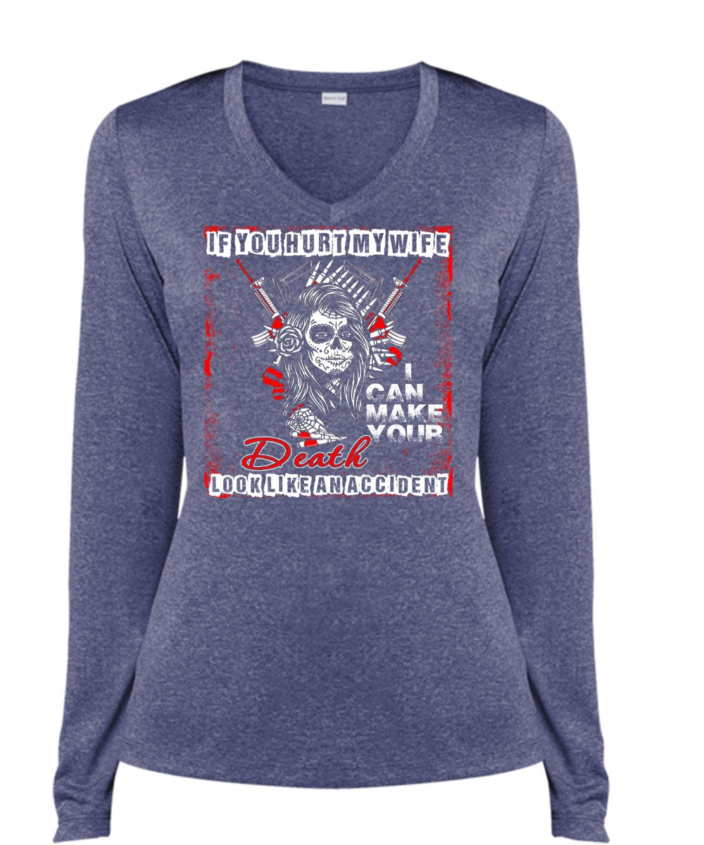 If You Hurt My Wife T Shirt, Death Look Like An Accident T Shirt, Cool Shirt (Ladies LS Heather V-Neck)